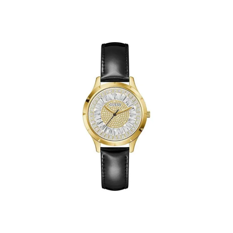 GUESS Наручные часы Кварцевый механизм Кожаный ремешок 36 мм Золотой циферблат Женские часы