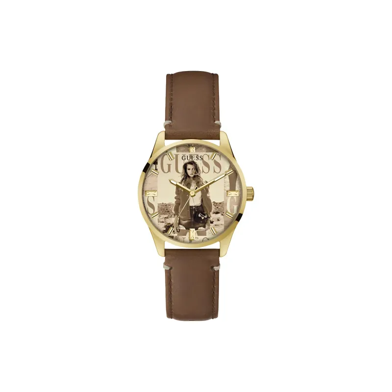 GUESS Наручные часы Кварцевый механизм Кожаный ремешок 36 мм Коричневый циферблат Женские часы