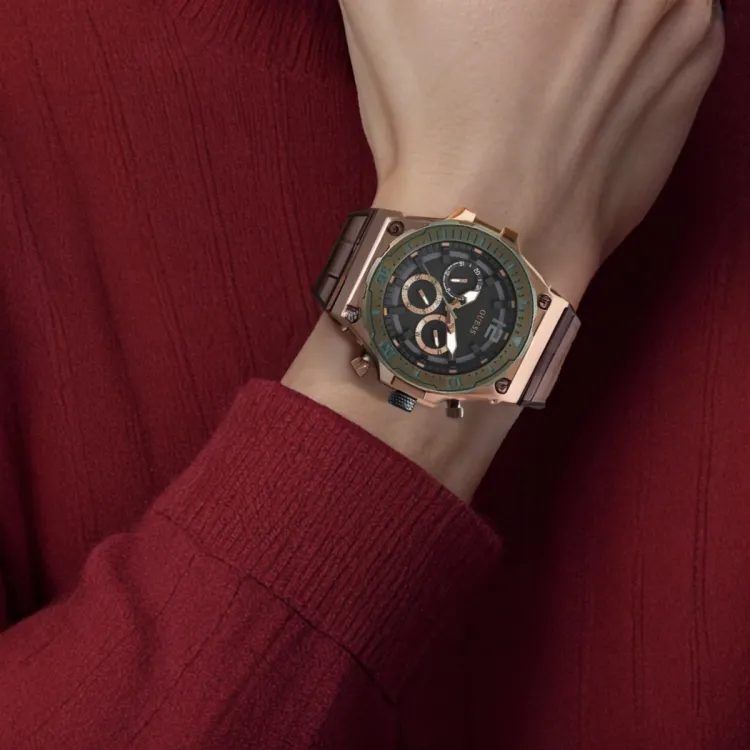 GUESS Наручные часы Кварцевый механизм Кожаный ремешок 48 мм Черный циферблат Мужские часы