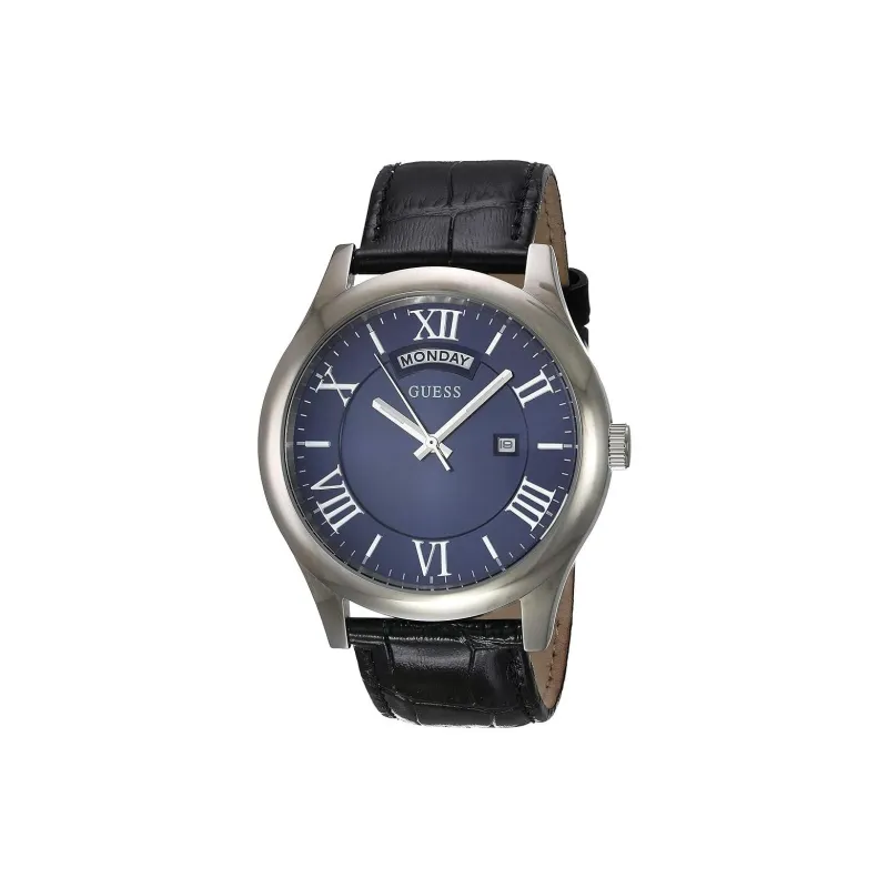 GUESS Наручные часы Кварцевый механизм Кожаный ремешок 44 мм Синий циферблат Мужские часы