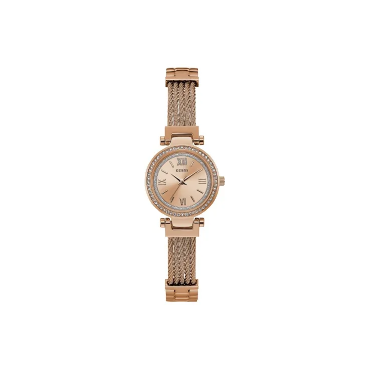 GUESS Наручные часы Кварцевый механизм Металлический ремешок Золотой циферблат Женские часы