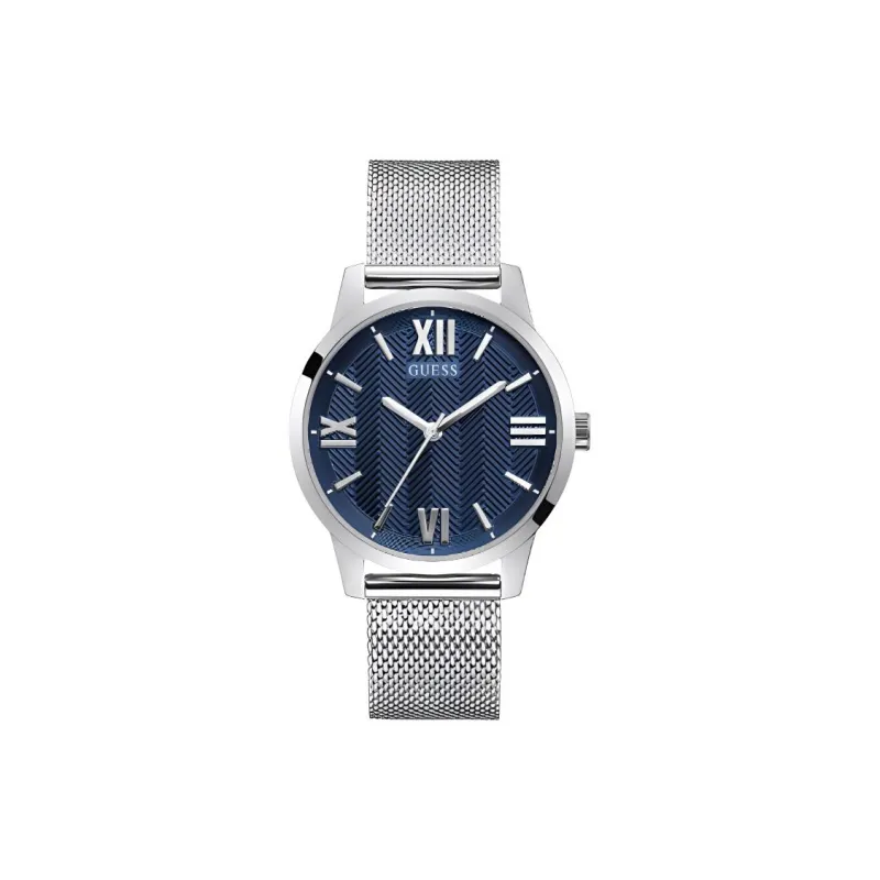 GUESS Мужские часы Кварцевый механизм Полированный стальной ремешок 42 мм Синий циферблат