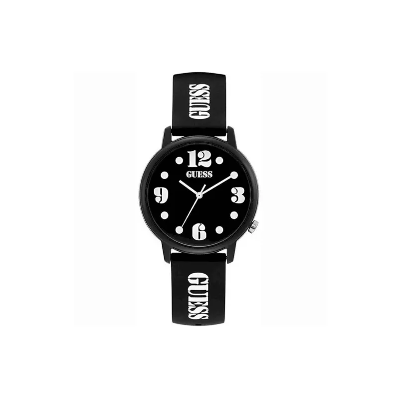 GUESS Мужские часы Кварцевый механизм Резиновый ремешок 42 мм Черный циферблат