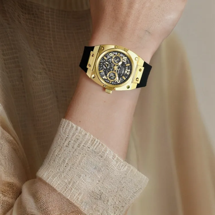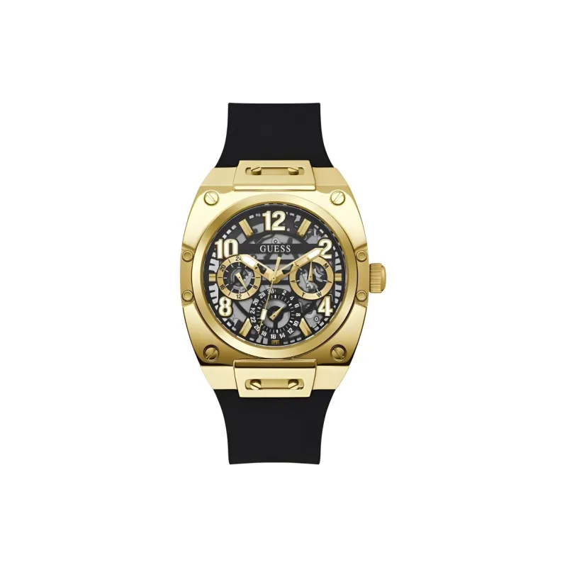 GUESS Мужские часы Кварцевый механизм Силиконовый ремешок 41,5 мм Черный циферблат