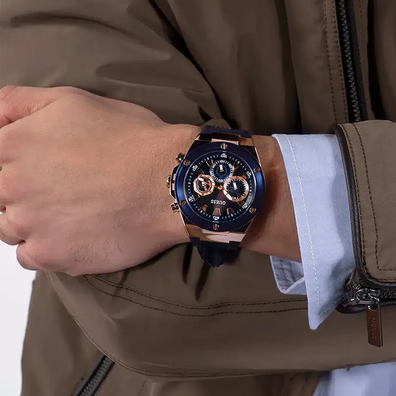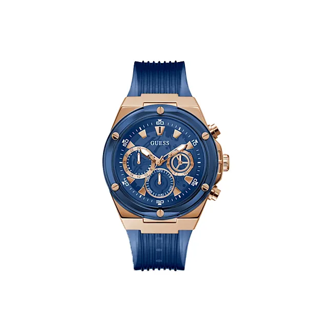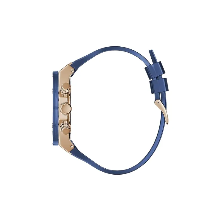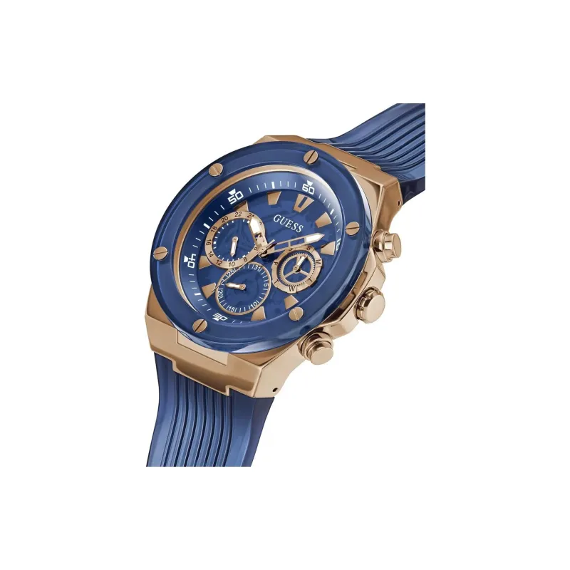 GUESS Мужские часы Кварцевый механизм Силиконовый ремешок 46 мм Синий циферблат