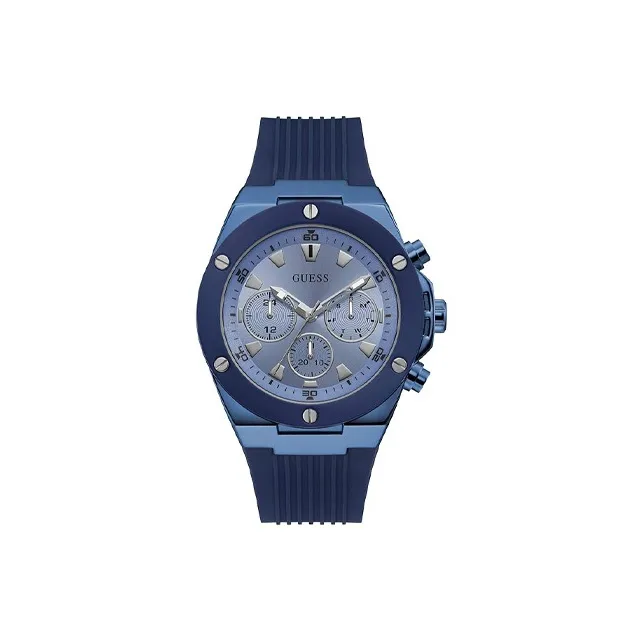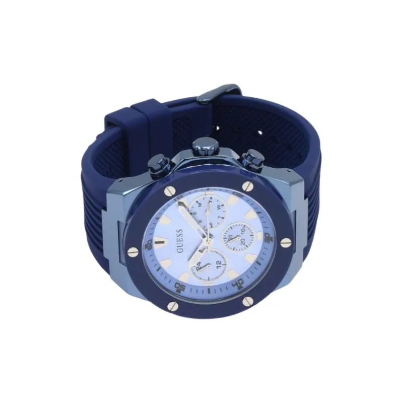 GUESS Мужские часы Кварцевый механизм Силиконовый ремешок 46 мм Синий циферблат