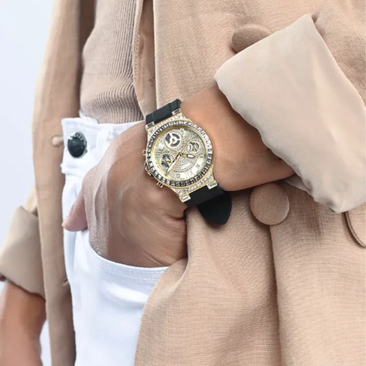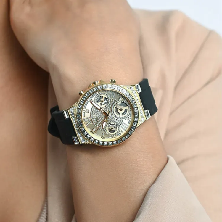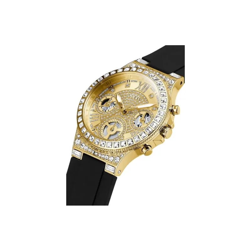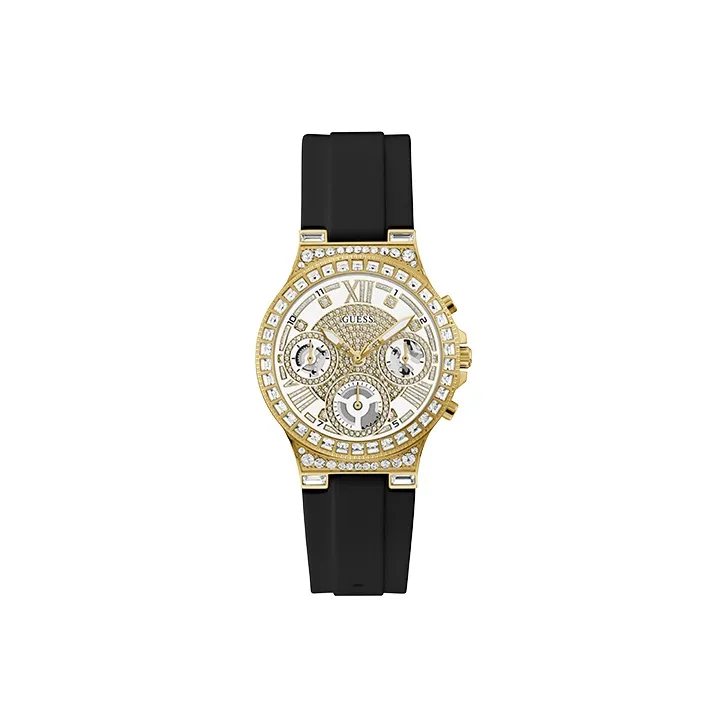 GUESS Наручные часы Кварцевый механизм Силиконовый ремешок Золотой циферблат Женские часы