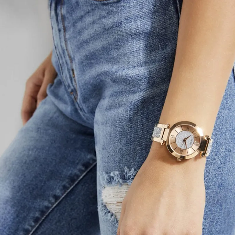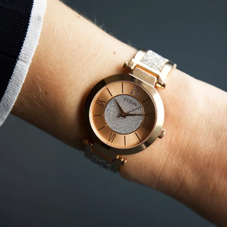 GUESS Women's Watch Кварцевый механизм ремешок из нержавеющей стали 36,5 мм розовое золото циферблат часы