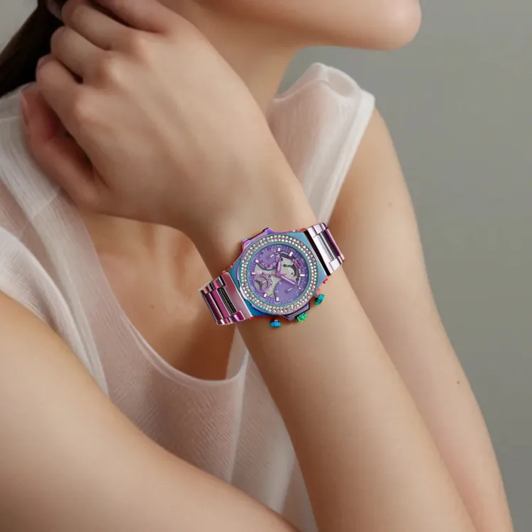 Циферблат часов фиолетового цвета