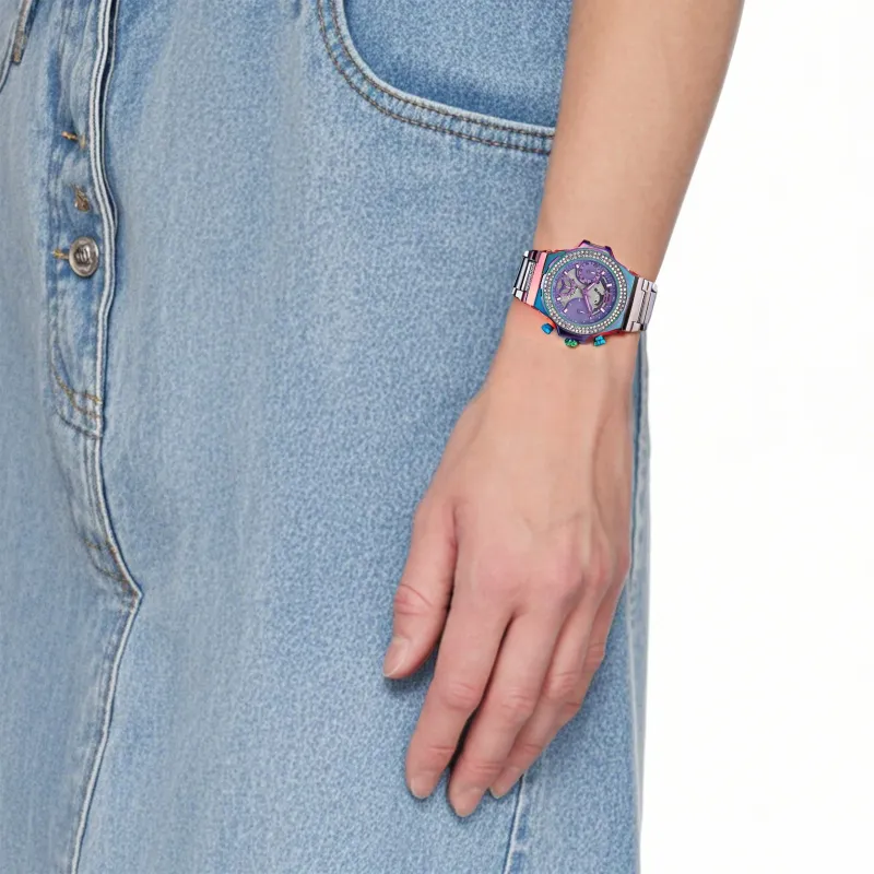 GUESS Women's Watch Кварцевый механизм ремешок из нержавеющей стали 36 мм фиолетовый циферблат