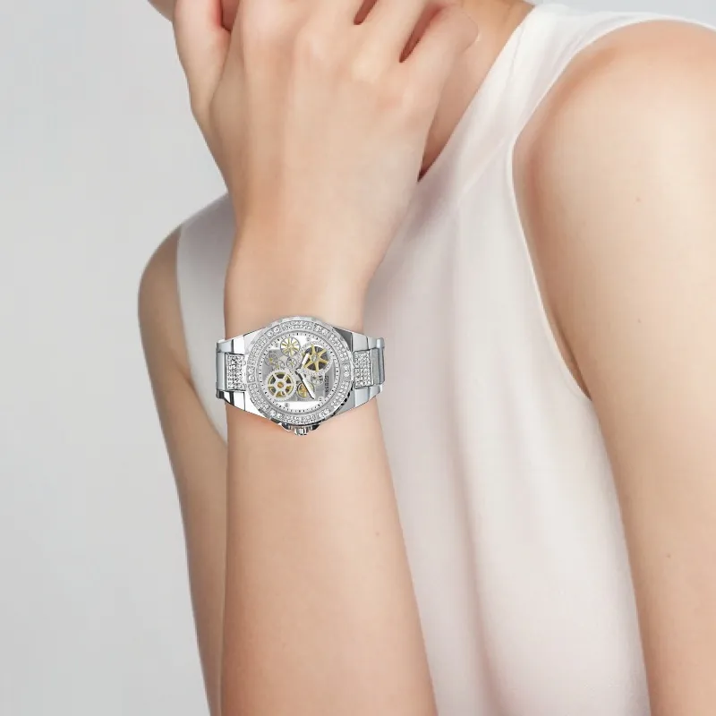 GUESS Женские часы Кварцевый механизм корпус из нержавеющей стали ремешок 39 мм циферблат с механизмом Skeleton