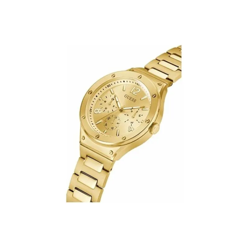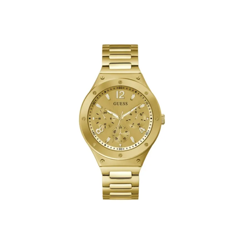 GUESS Мужские часы Кварцевый механизм Ремешок из нержавеющей стали 44 мм Золотистый циферблат