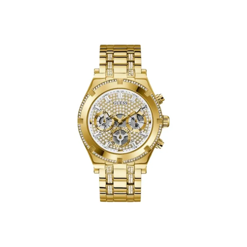 GUESS Мужские часы Кварцевый механизм Ремешок из нержавеющей стали 44 мм Часы с циферблатом в стиле "скелет"