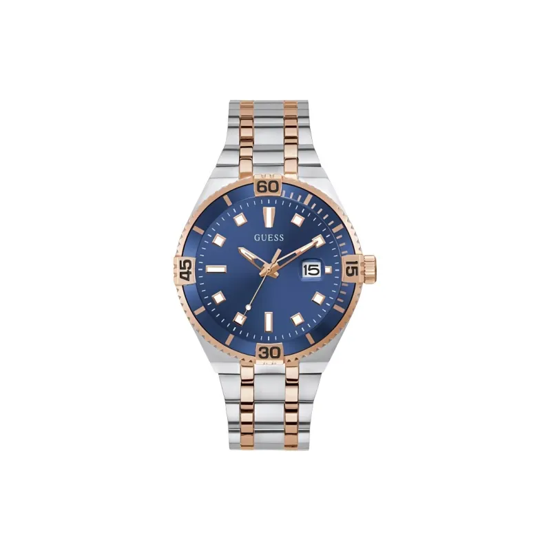 GUESS Мужские часы Кварцевый механизм Ремешок из нержавеющей стали 45 мм Синий циферблат