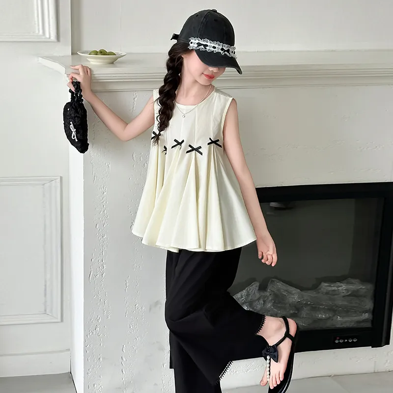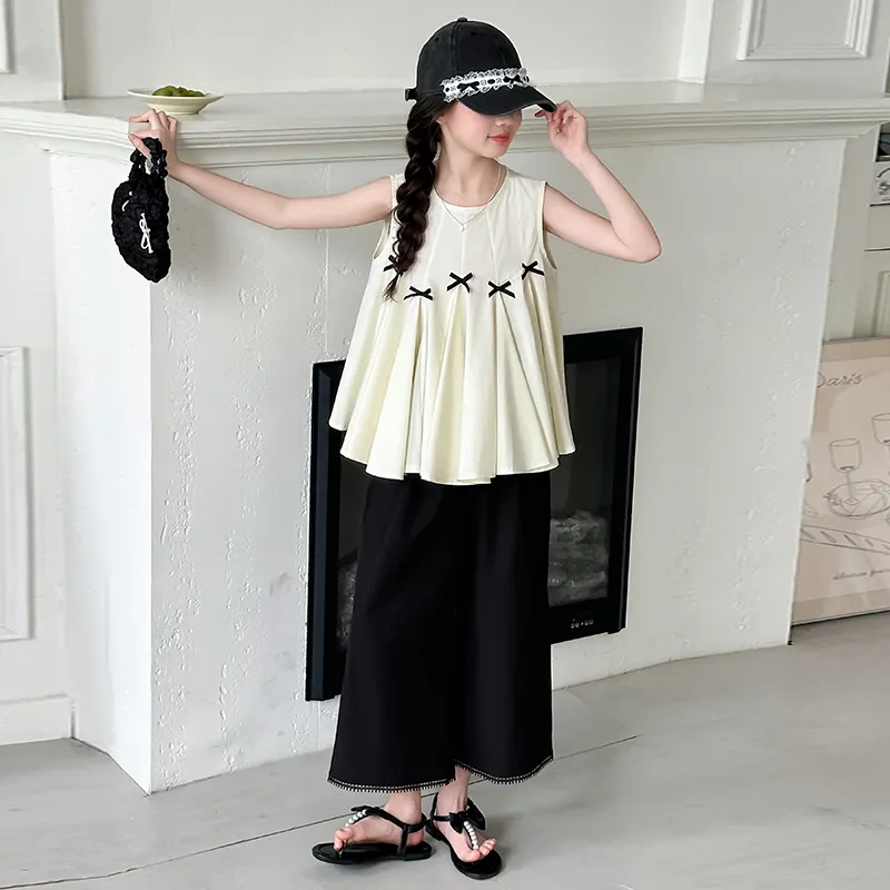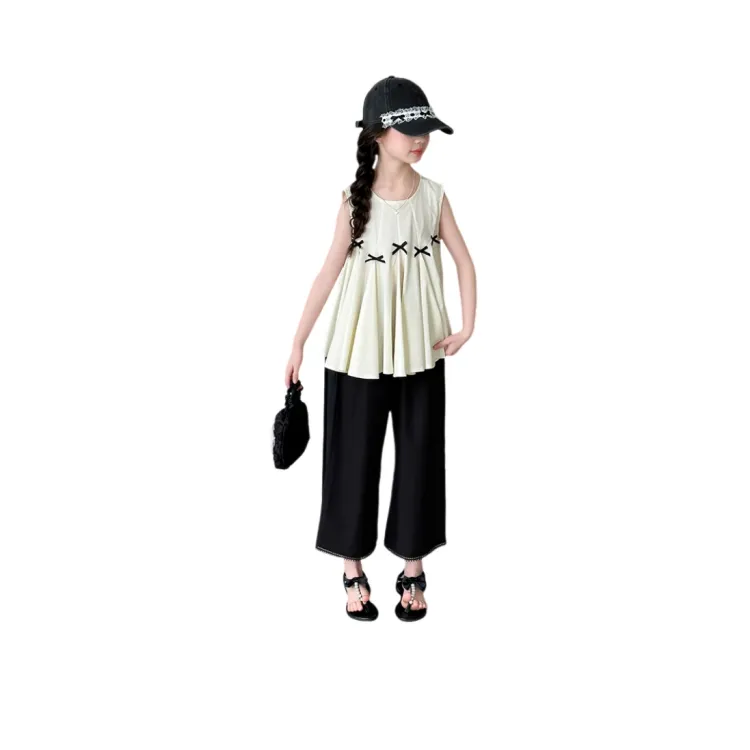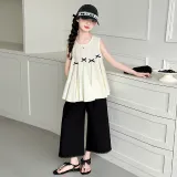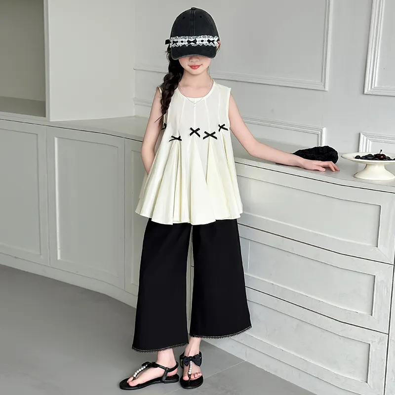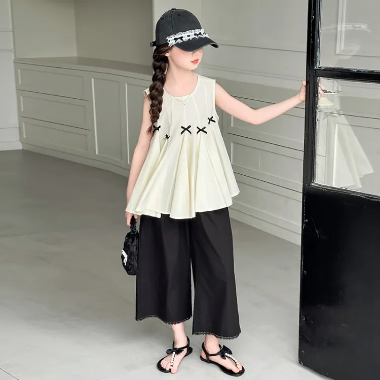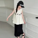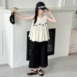 Guldoeleph Повседневная Спортивная Одежда 2 Предмета Комплект Черный Короткий Рукав Рубашка + Широкие Штаны Детские
