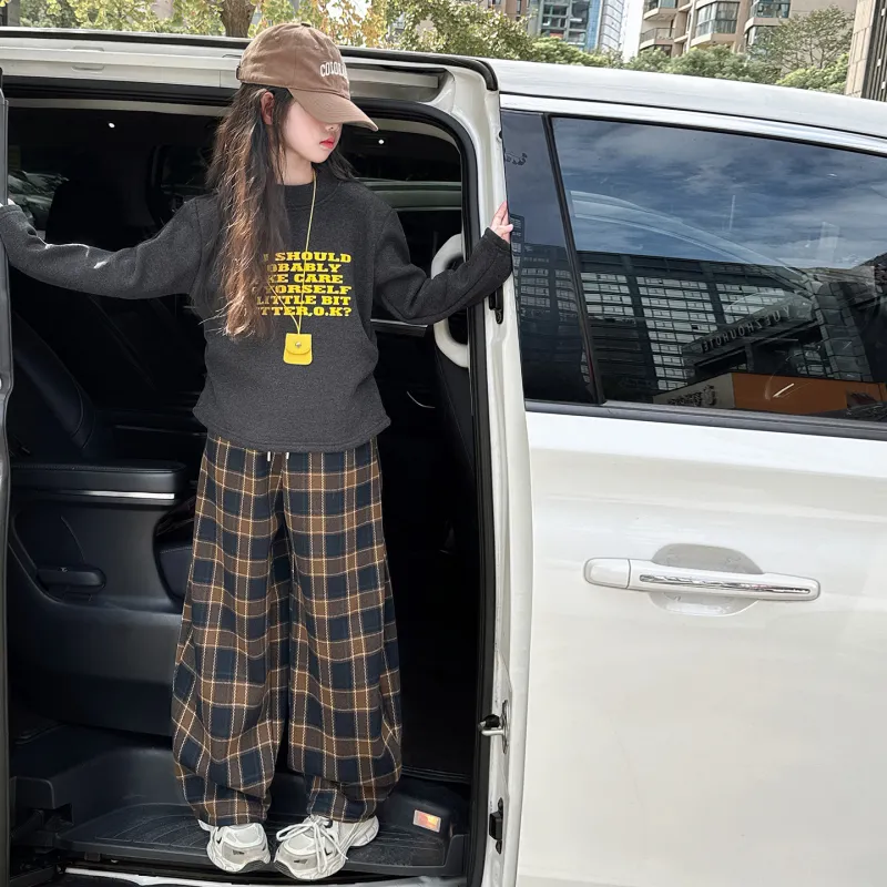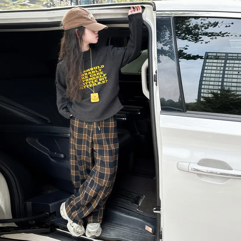 Цвет:Gray + Yellow Plaid Pants Серые + Желтые Клетчатые Брюки
