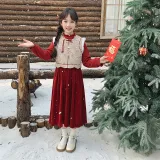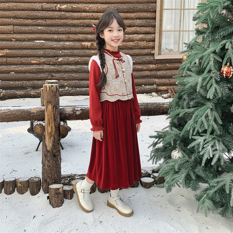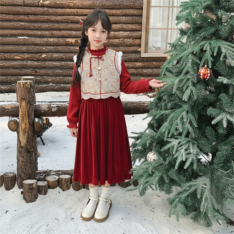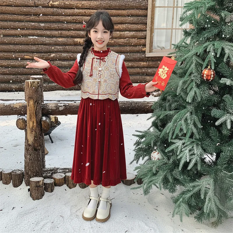 Цвет:Китайский комплект из трех предметов [жилет + свитер + юбка] красного цвета