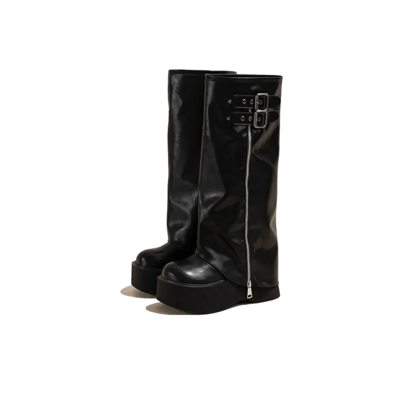 GULIA Женские высокие сапоги на молнии черные