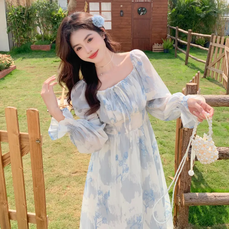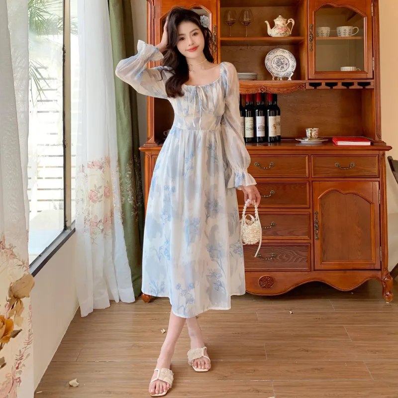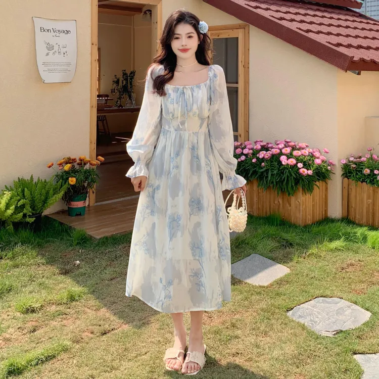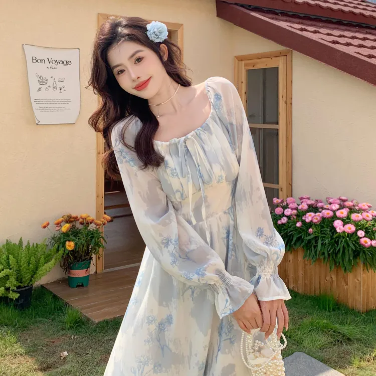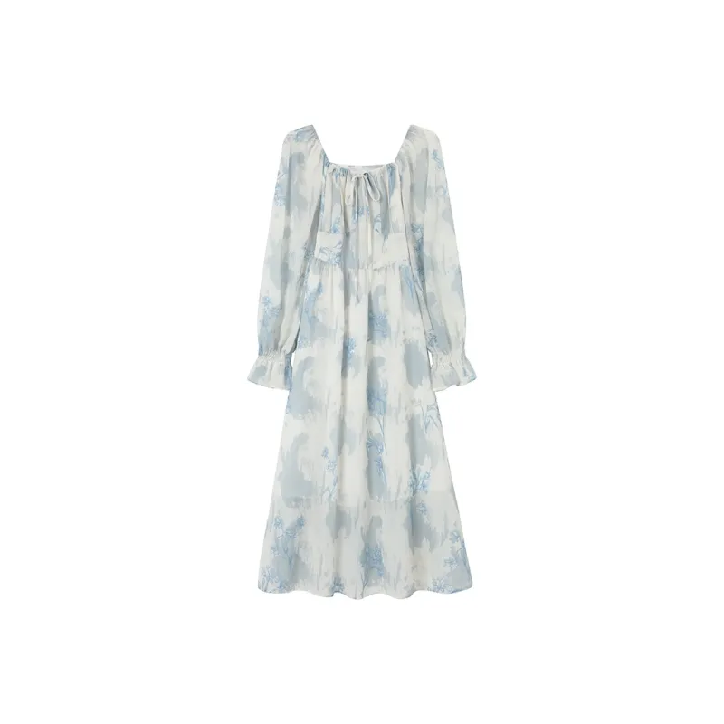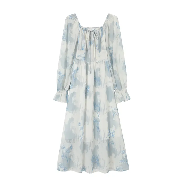 GULIANFEI Длинное платье с длинными рукавами женское многоцветное