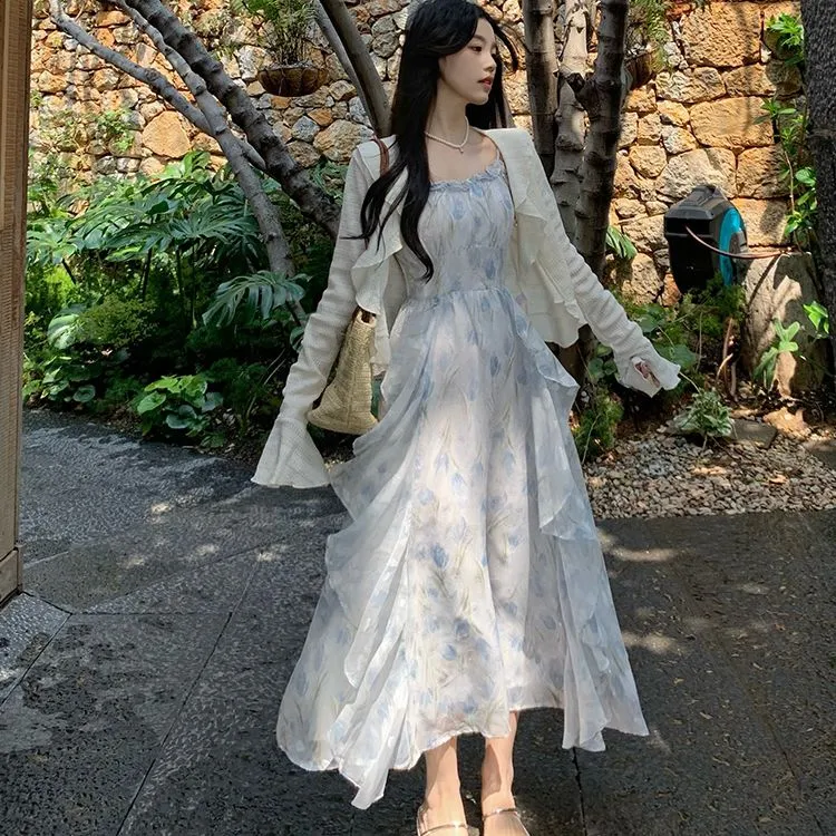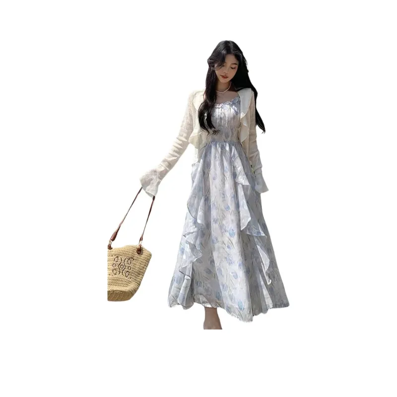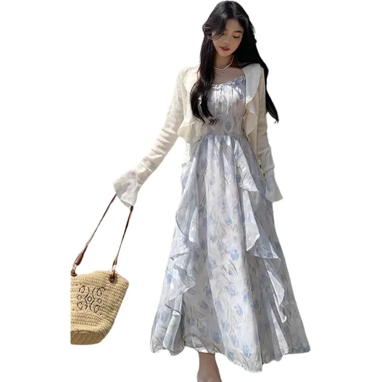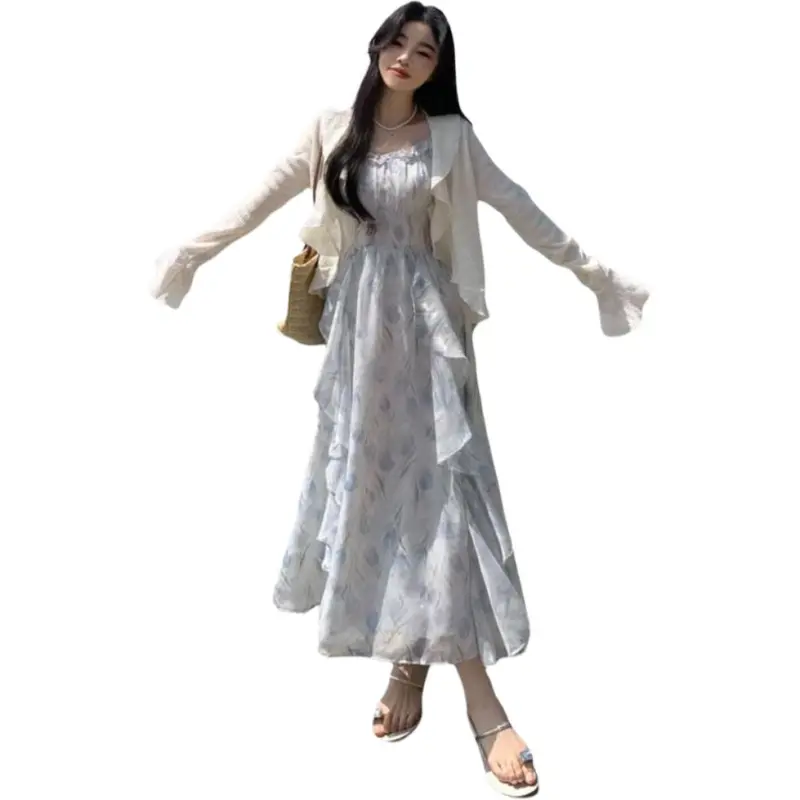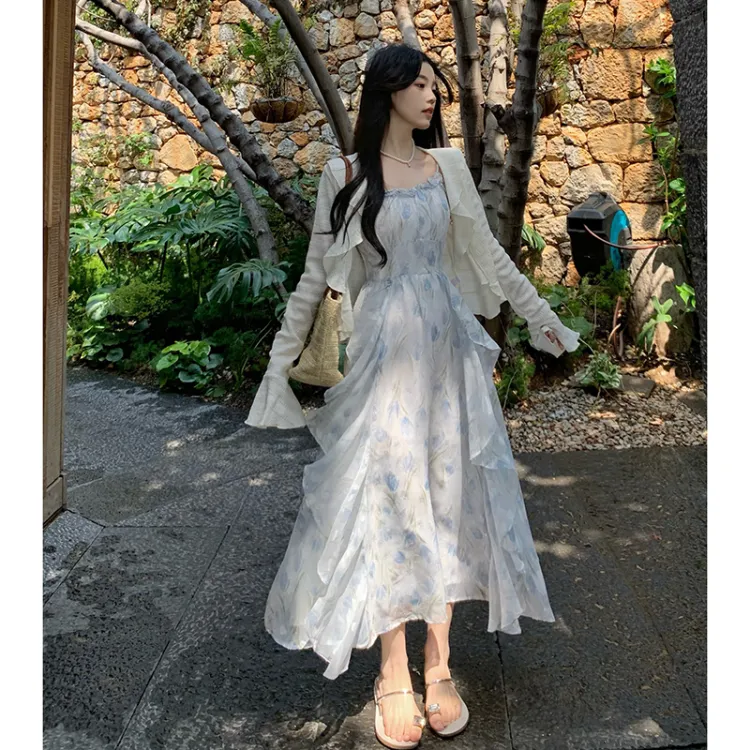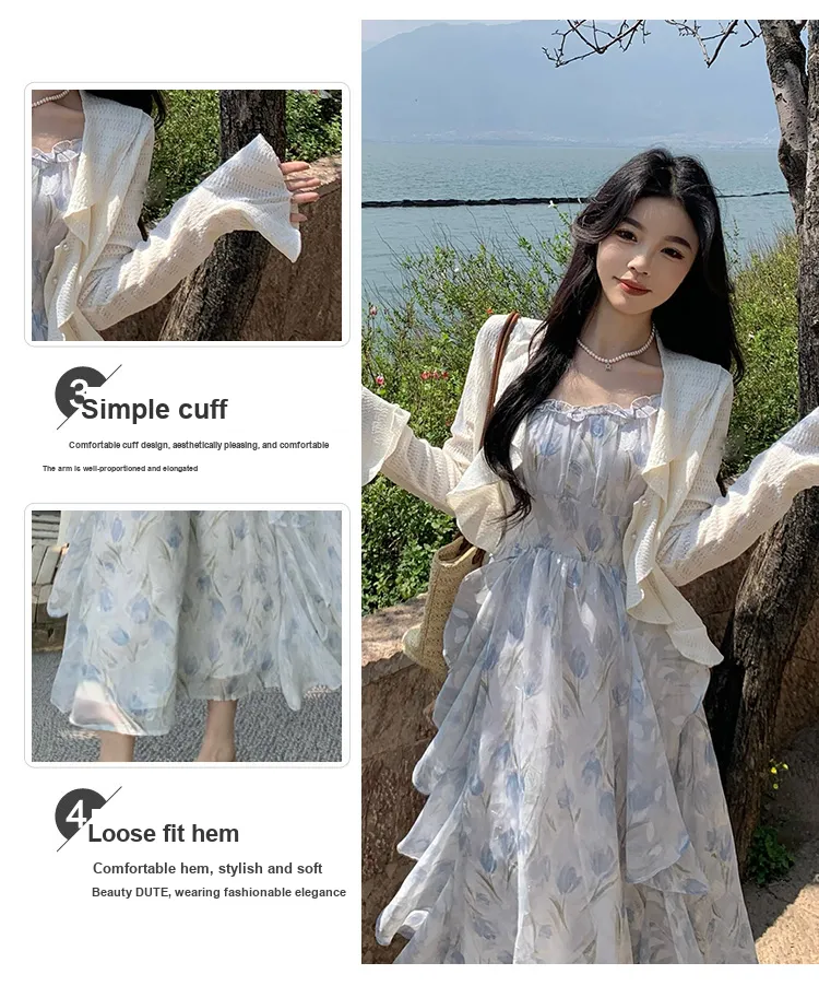 Цвет:Кардиган абрикосового цвета + синее платье-камуфляж