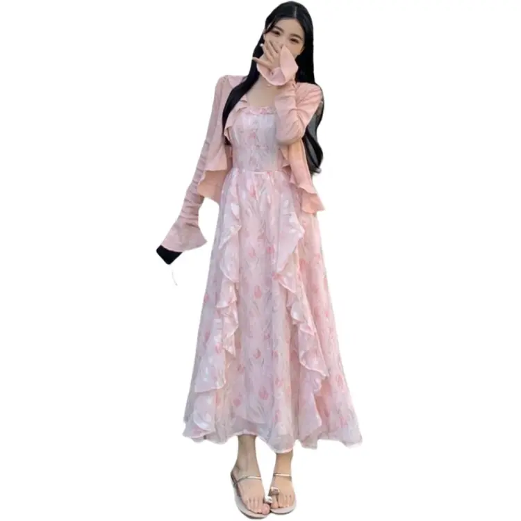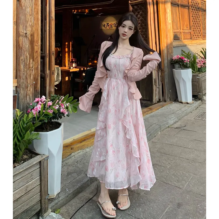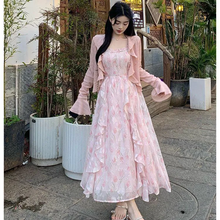 Розовый кардиган + розовое платье-комбинация