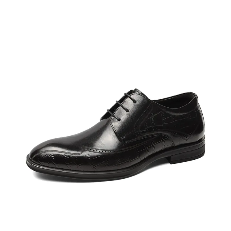 Guoju Повседневные кожаные туфли низкие черные мужские