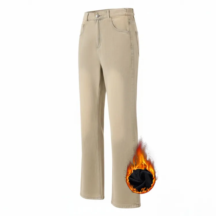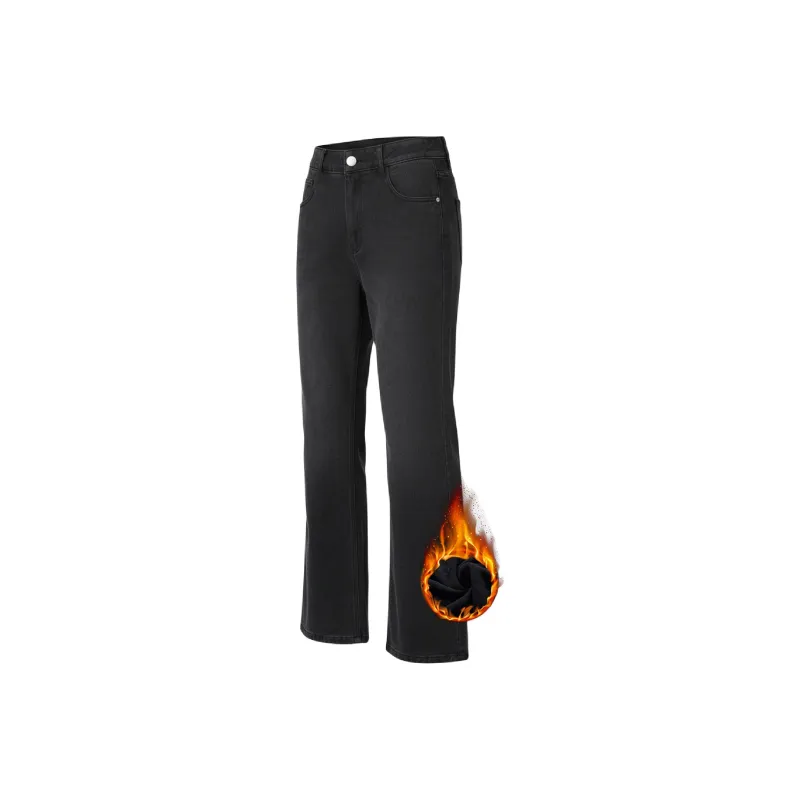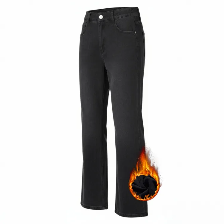 GUOJU Расклешенные Осенние и Зимние Утолщенные и с Флисовой Подкладкой Джинсы Унисекс