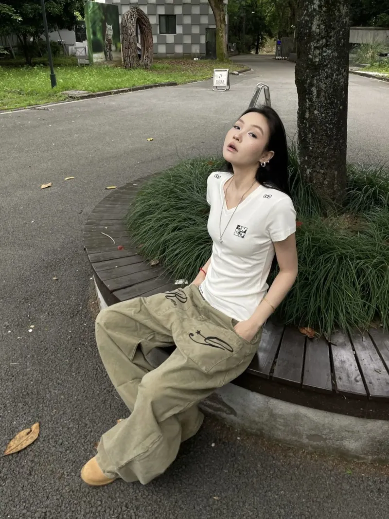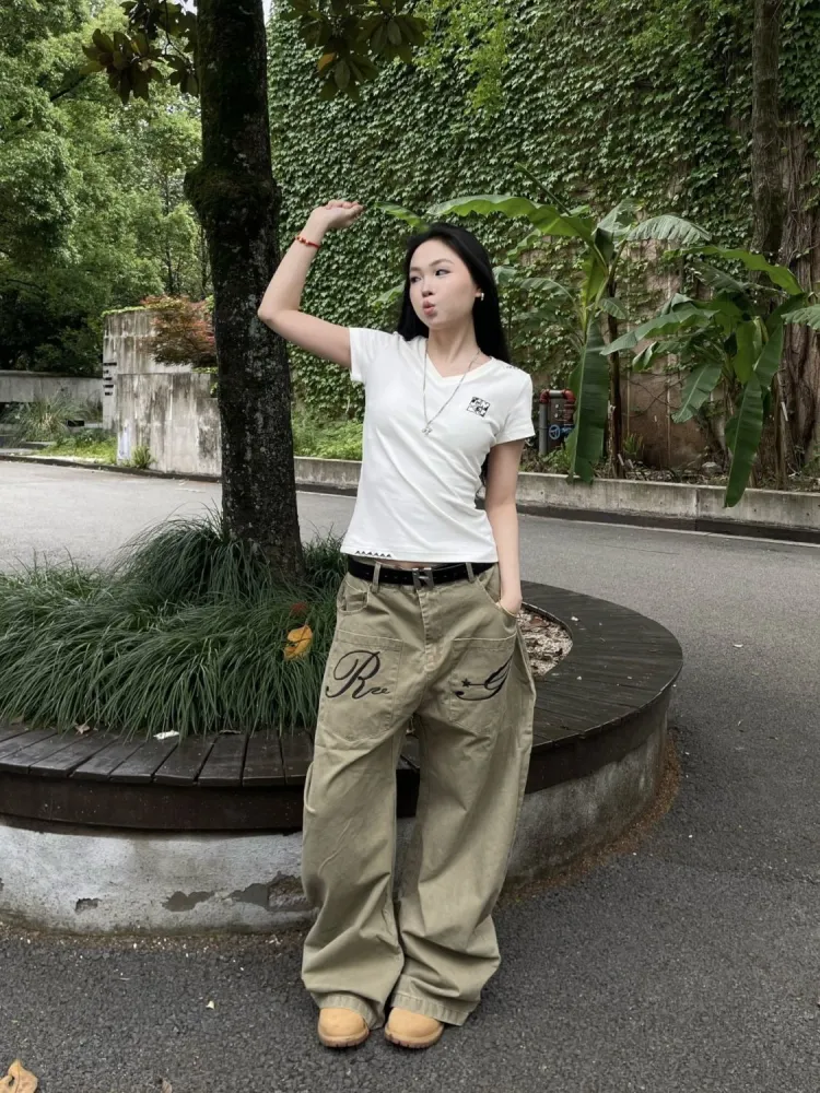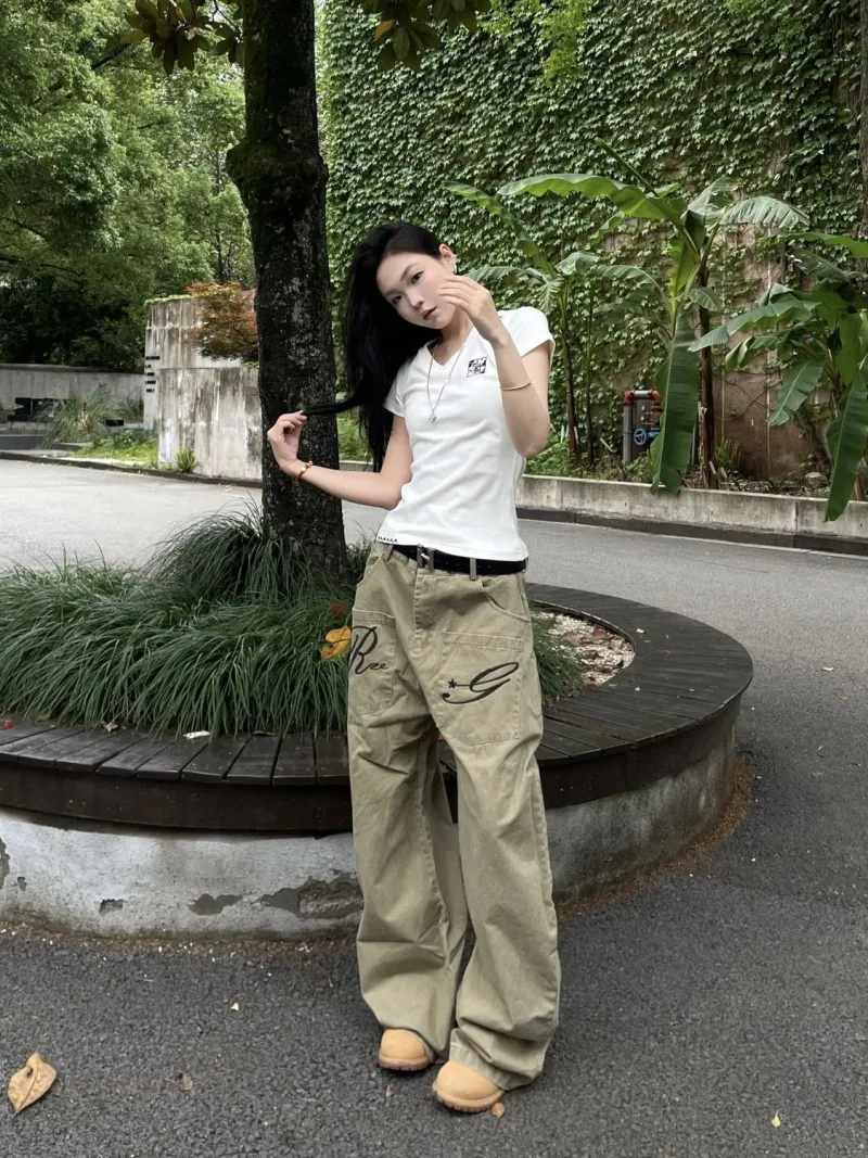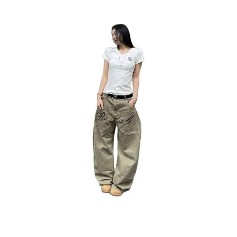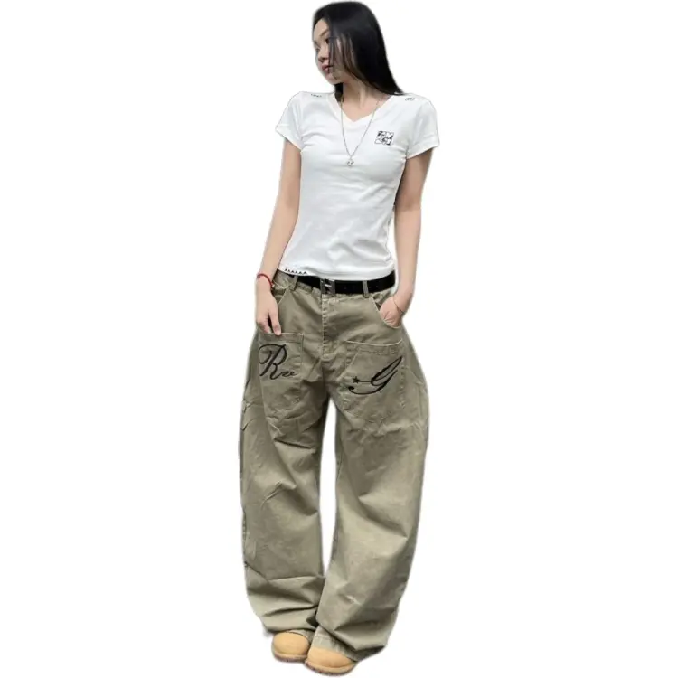 GUOZHEN Коричневый Унисекс Джинсы