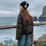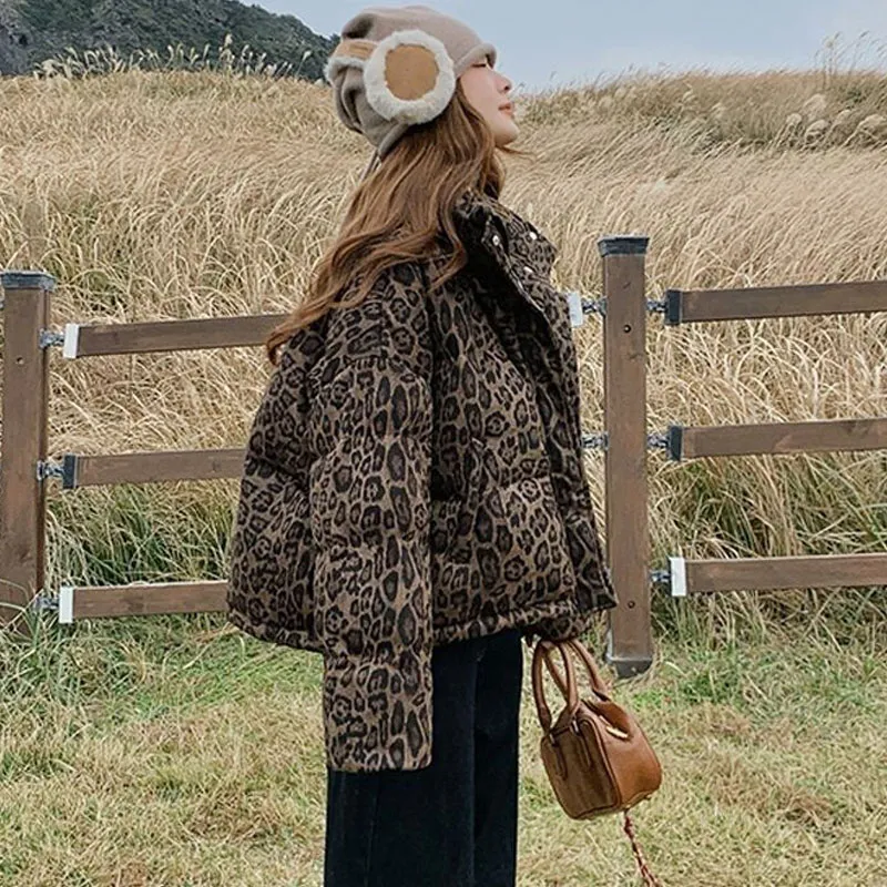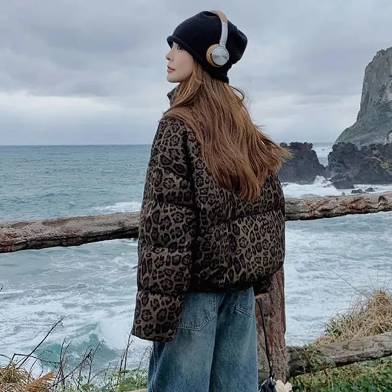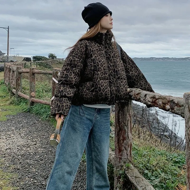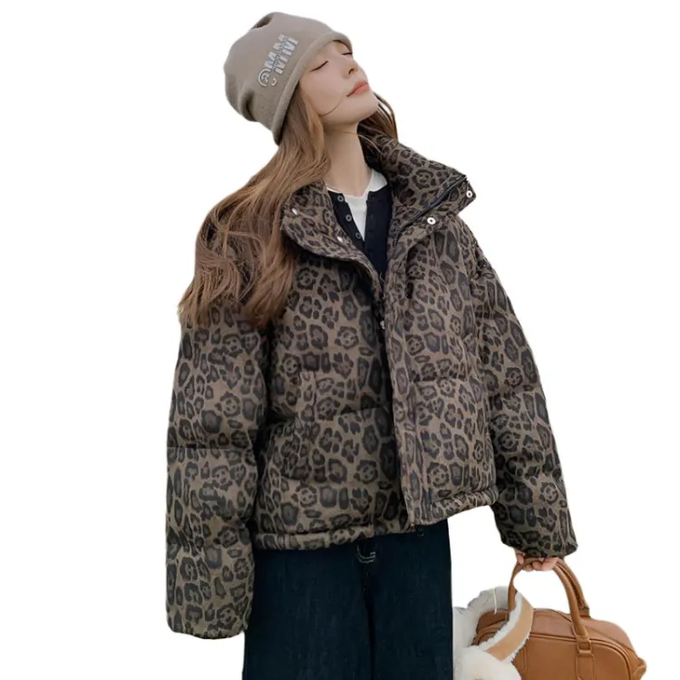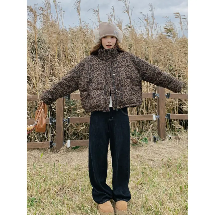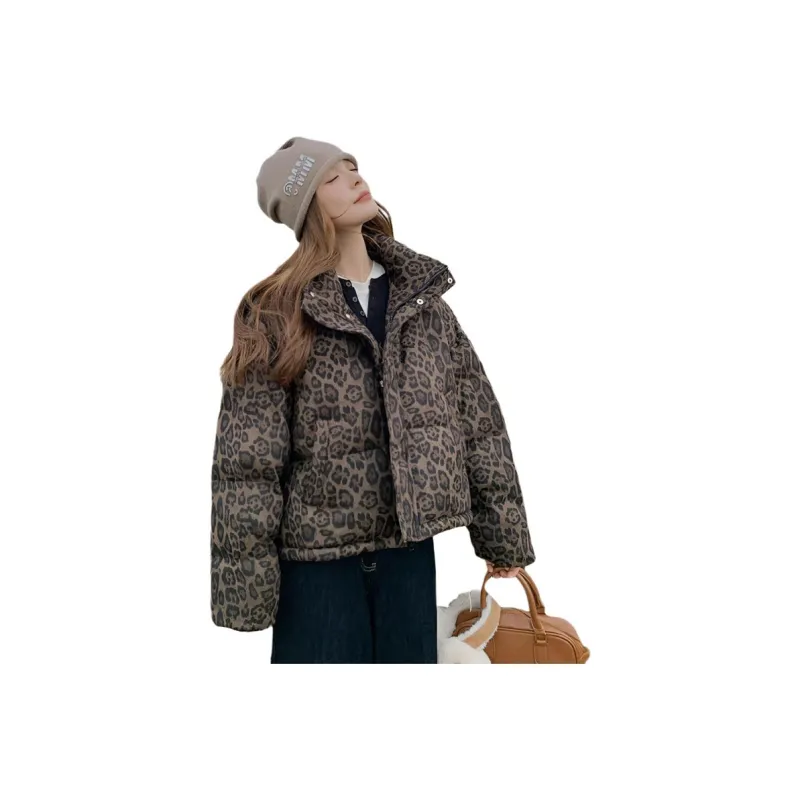 GUOZHEN Коричневый Леопардовый принт Унисекс Пуховики