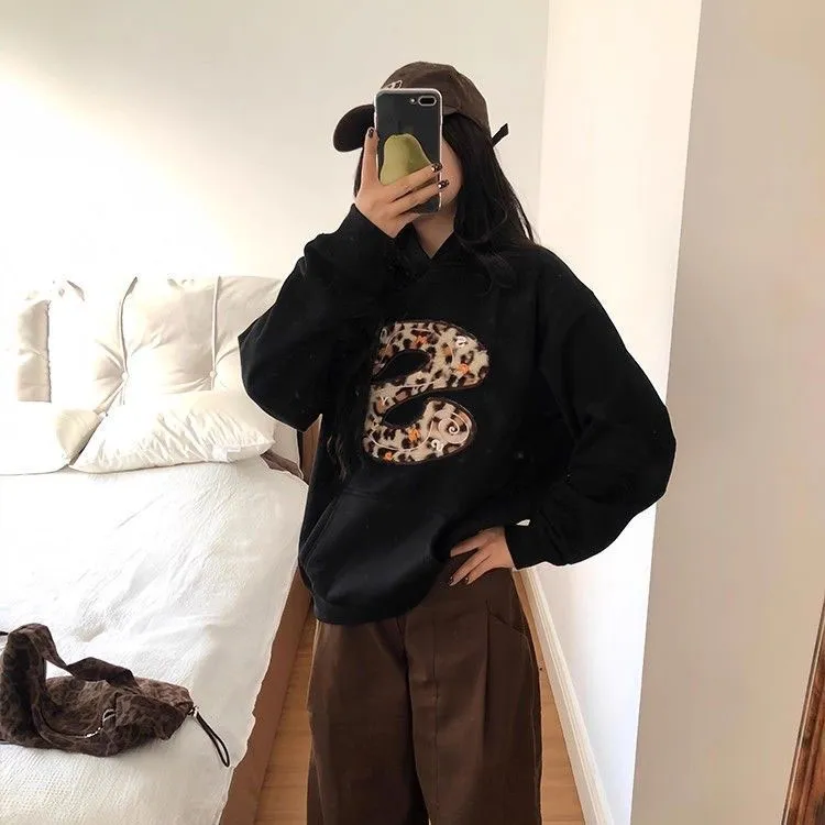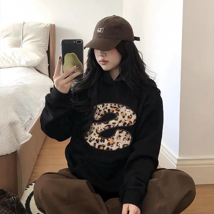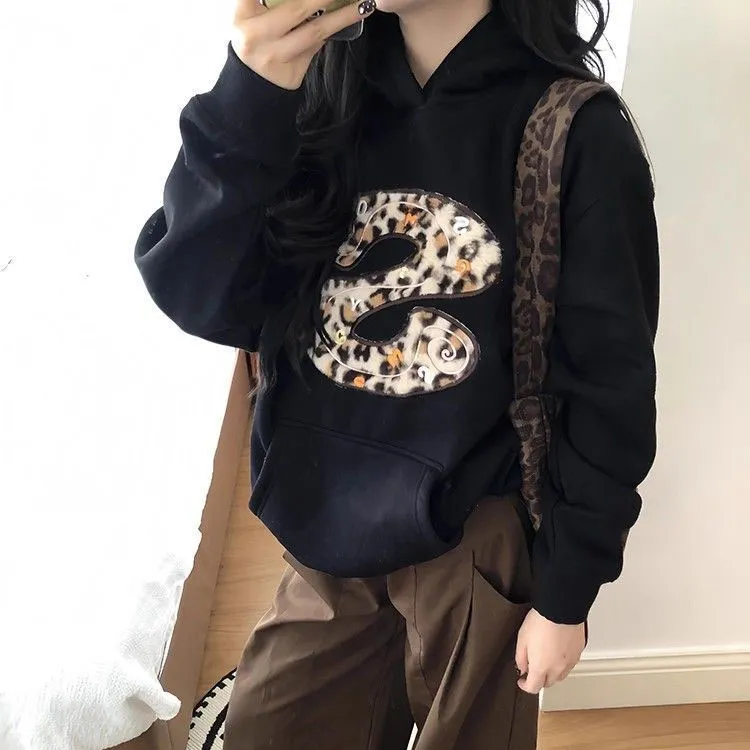 GUOZHEN Черный флис с подкладкой Женские свитшоты