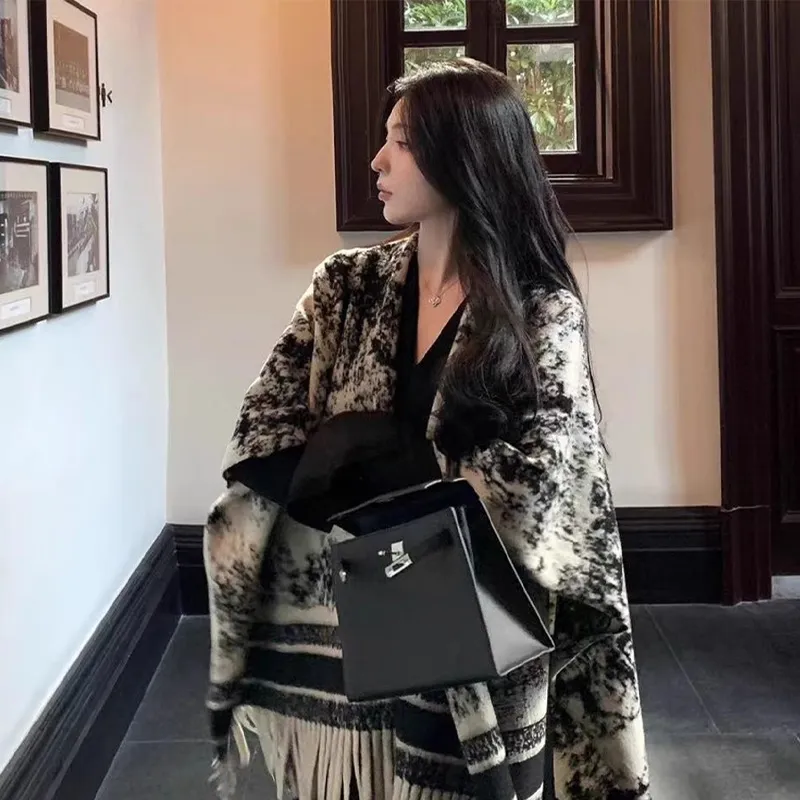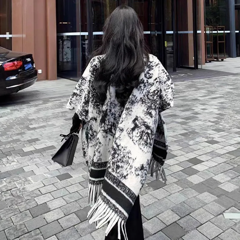 GUSKI Полиэстер Fashion Trend Versatile Осенний Зимний Плащ Женский Набор в Коробке Черный Белый