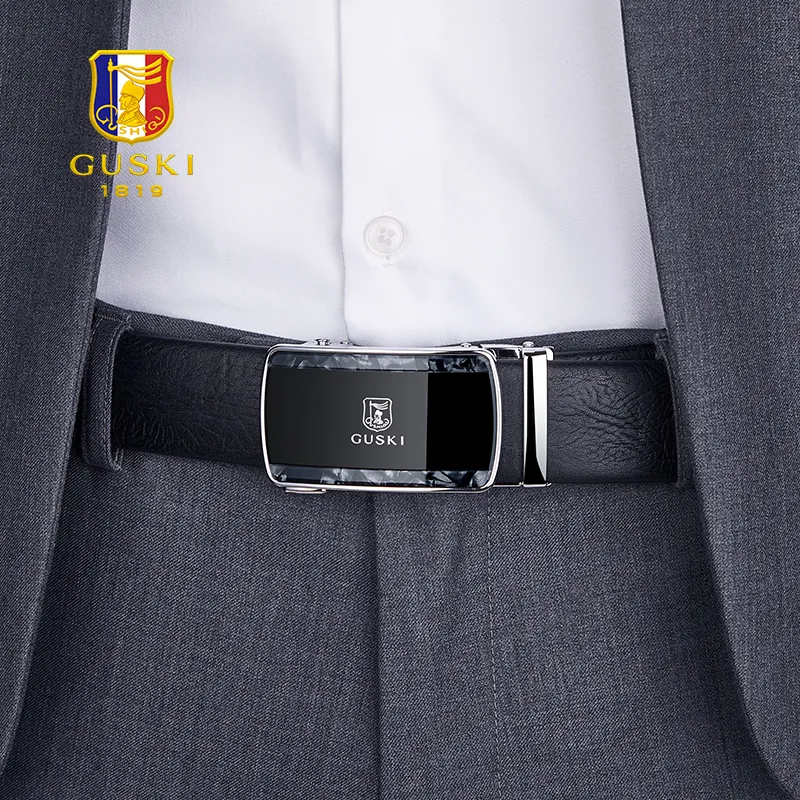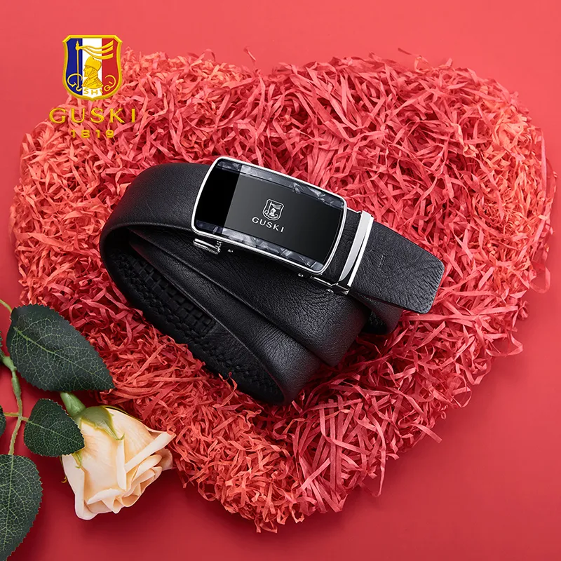 GUSKI Лицевая коровья кожа Fashion casual Husband Ремень Элегантность Удобный Ремень Мужской Ширина 3,5 см Подарочный набор в коробке