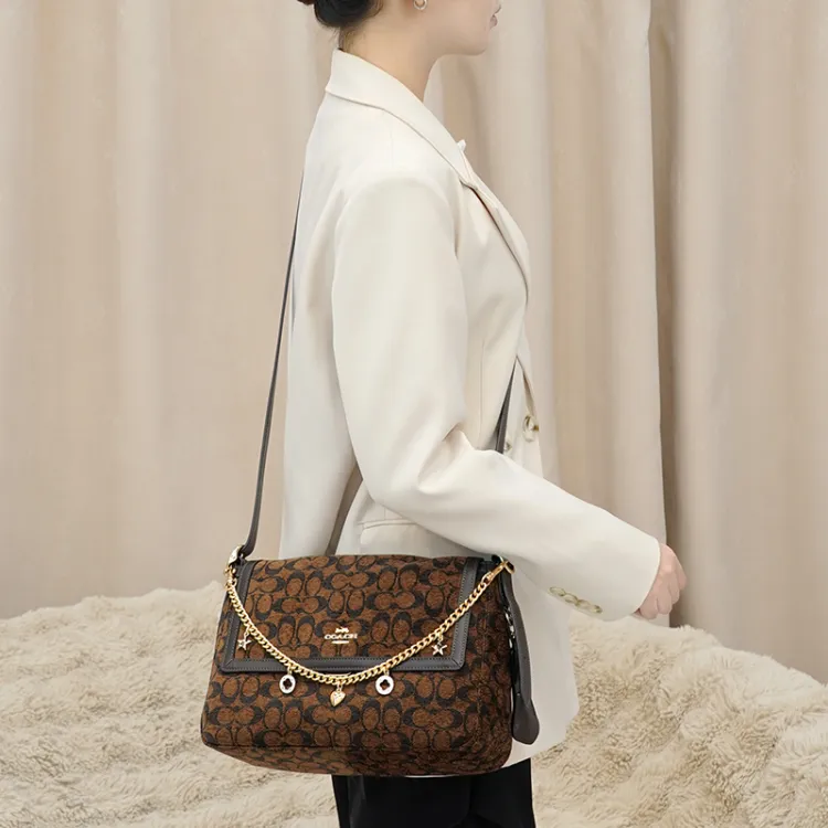 Коричневый через плечо, плечевой ремень + декоративная цепь