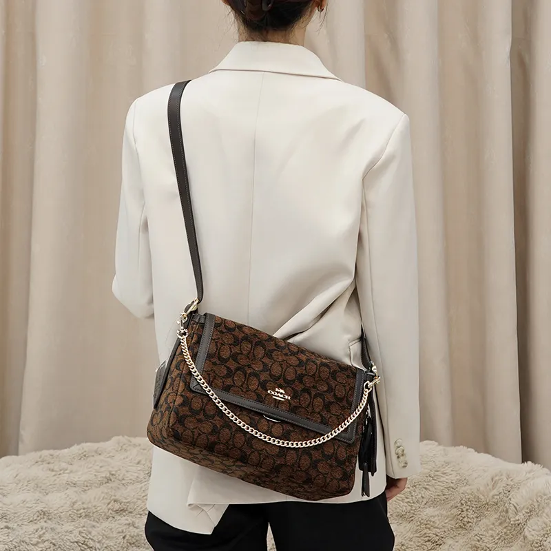 Цвет:Коричневый через плечо, плечевой ремень + декоративная цепь