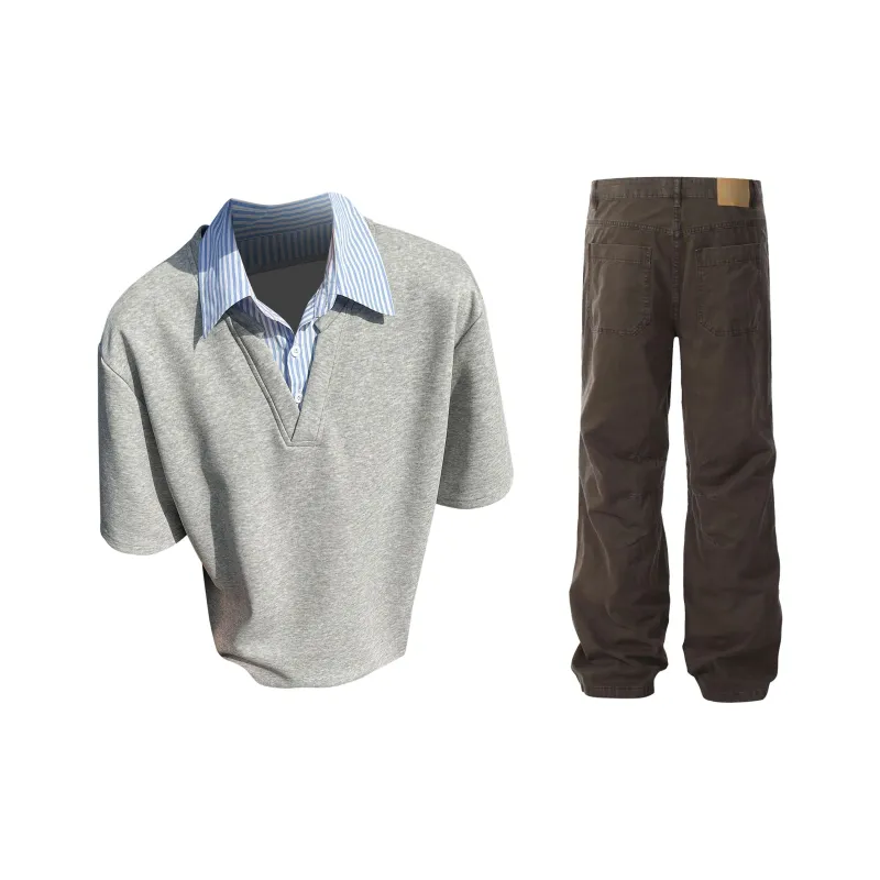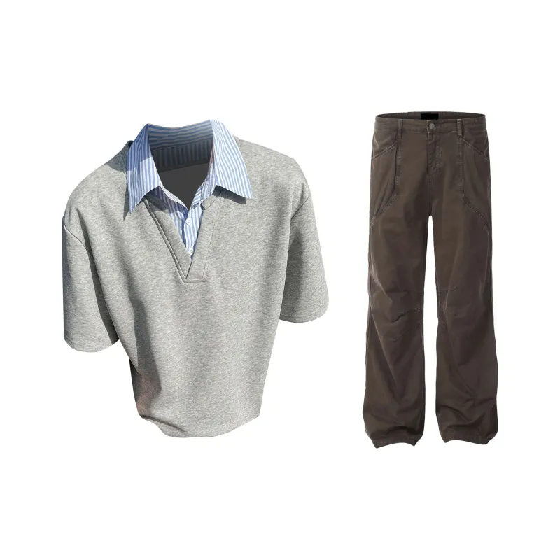 Комплект:Gray Top + Brown Pants Серый топ + коричневые штаны
