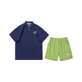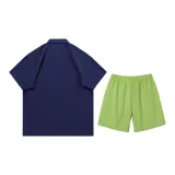 Комплект:Синяя рубашка с коротким рукавом + неоновые зеленые шорты