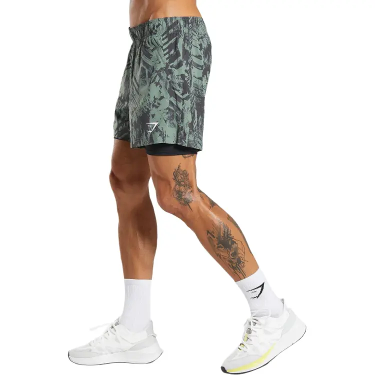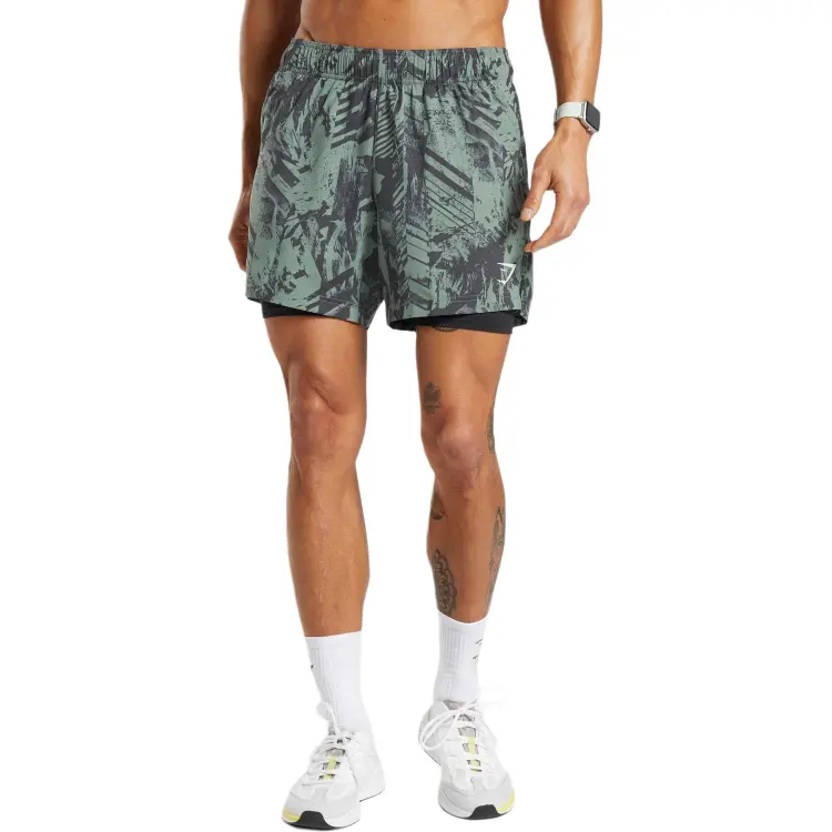 GYMSHARK Спортивные шорты 5' 2 IN 1 Повседневные шорты Мужские Ivy Green