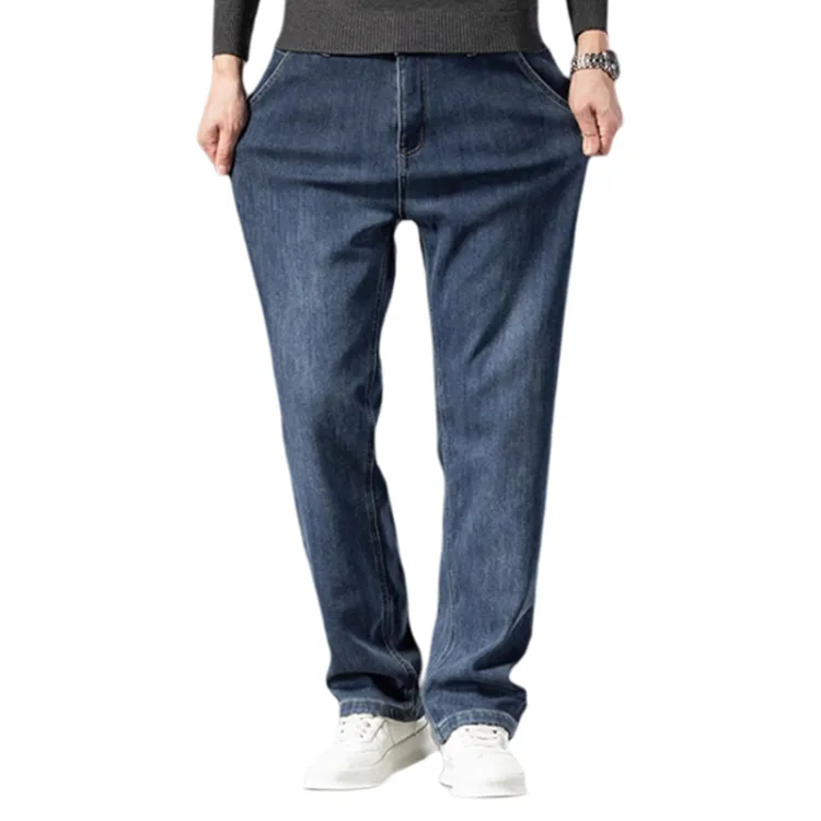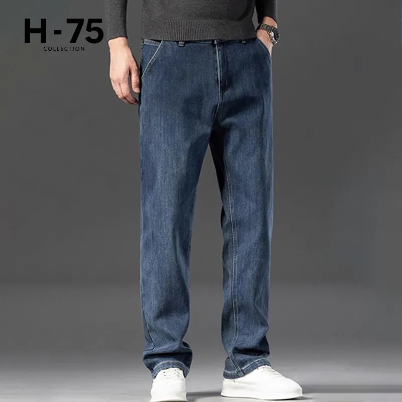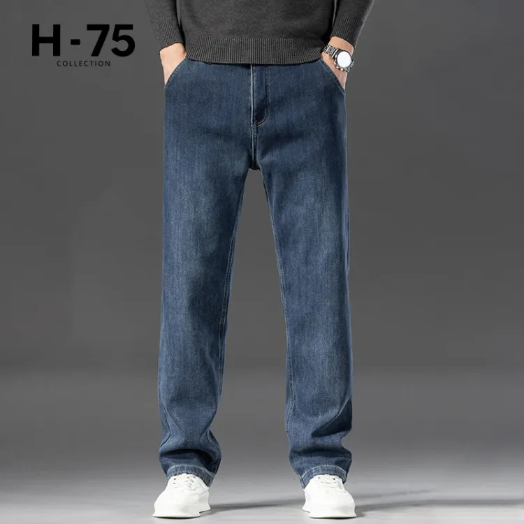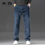 H 75 Ностальгический синий [Утолщенный и с флисовой подкладкой] Мужские джинсы