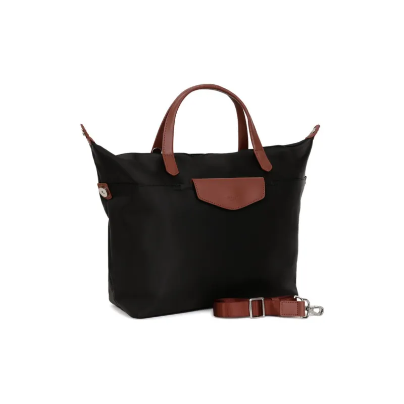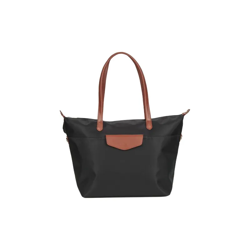 H HEXAGONA Париж Нейлон с Два Layer Кожа Тоут Сумка Сумка для покупок Сумка на плечо Сумка Обычный Женские Черный