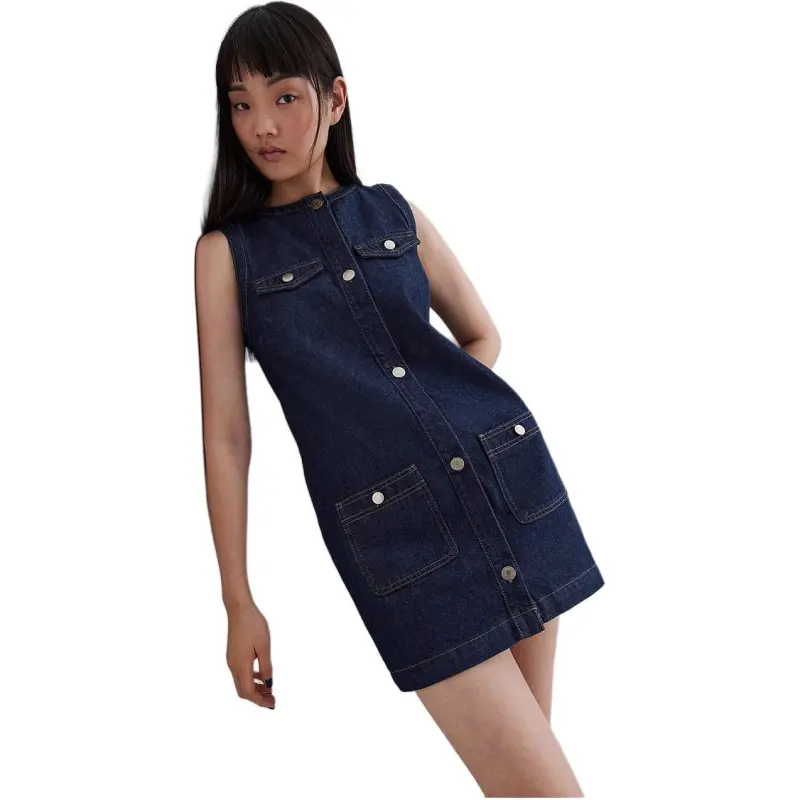 H M Без рукавов Платье Женское Темно-Джинсовый Синий