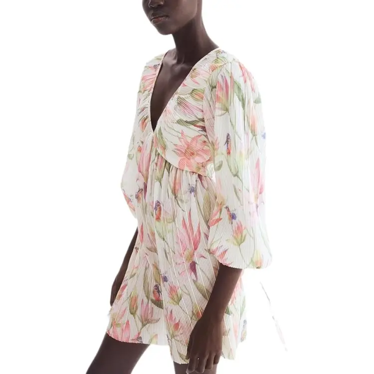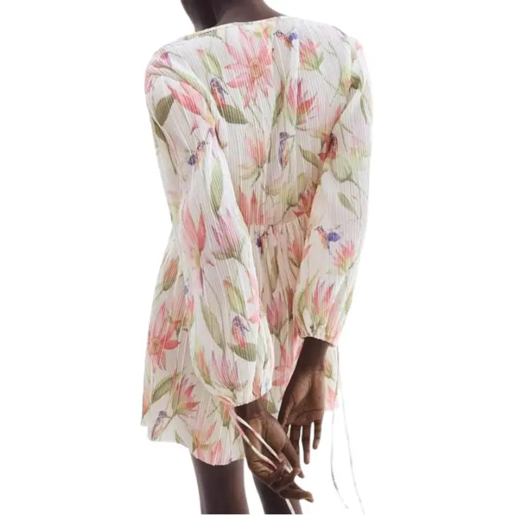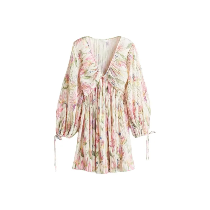 H&M Крем/Цветочный Женские Длинные Платья с Рукавами