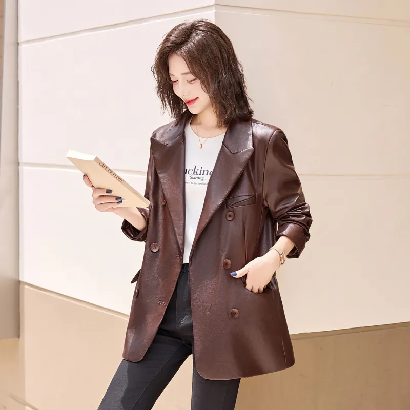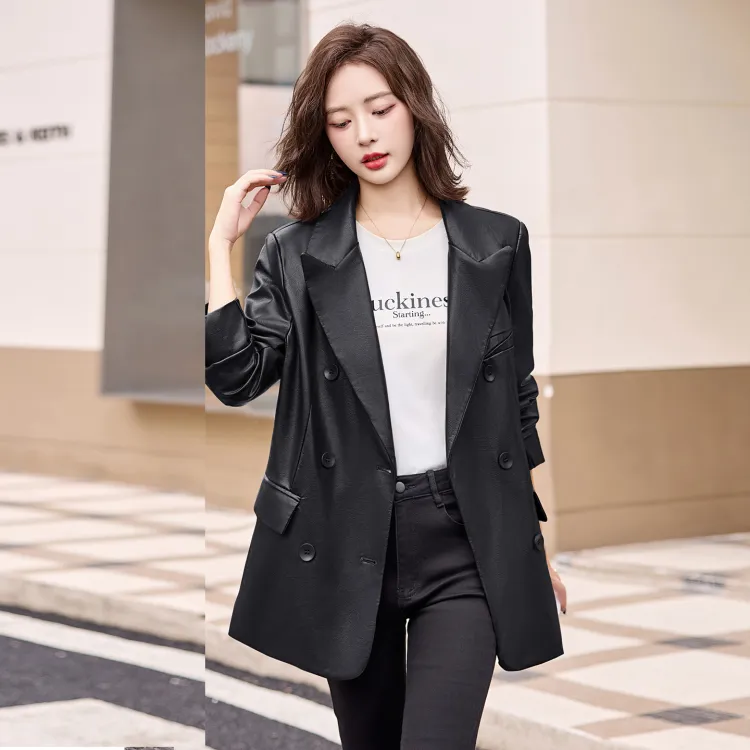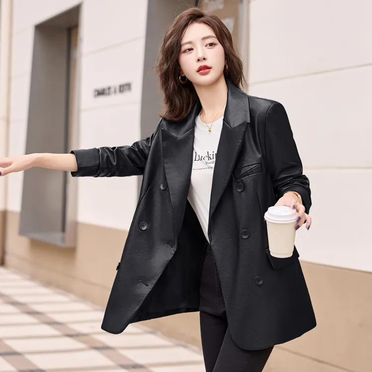 H YXIANG Кожа Куртка Женская