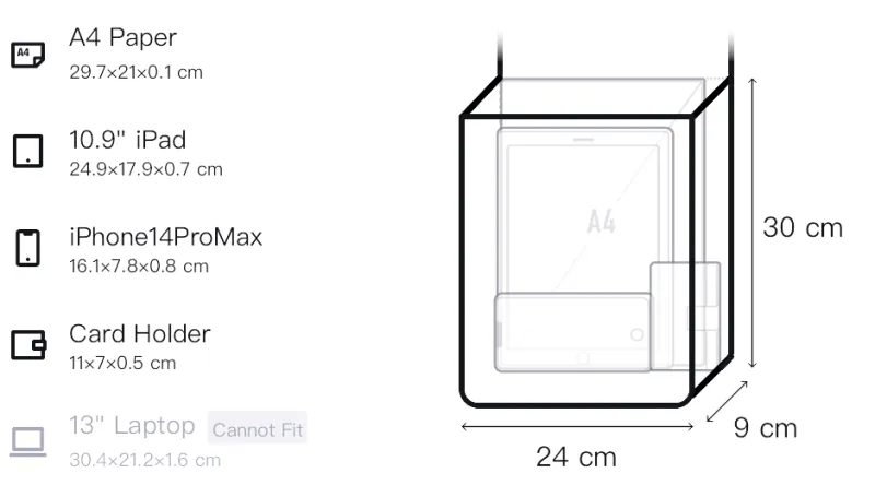 Д20*Ш9*В30см