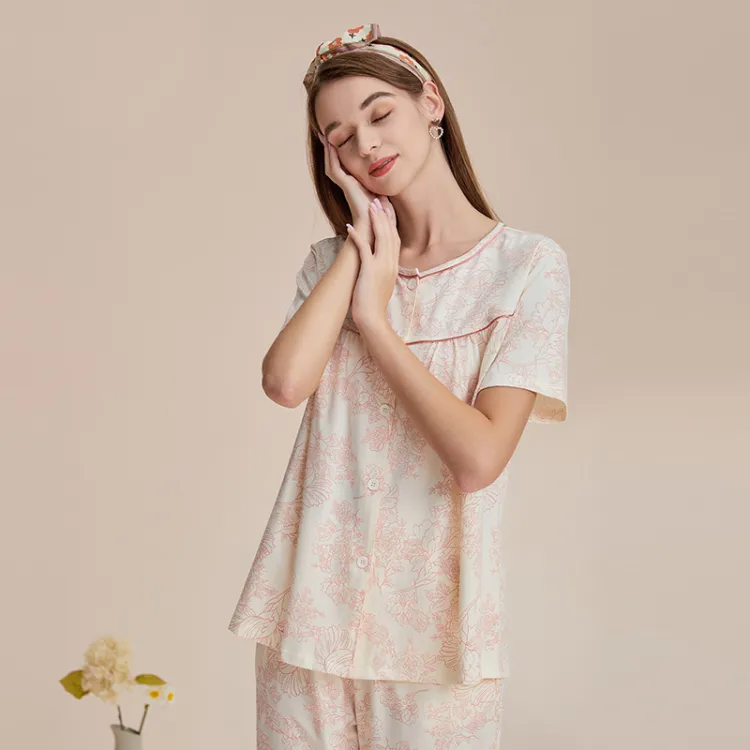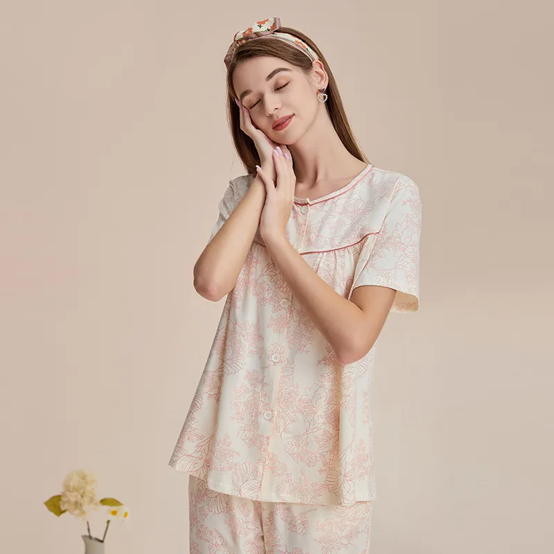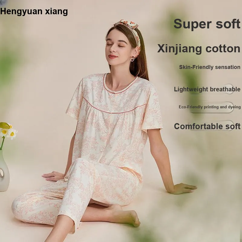 H YXIANG Пижамный комплект женский красный пион