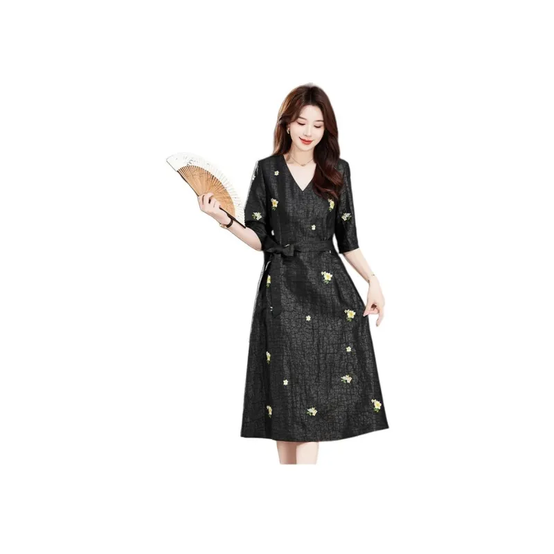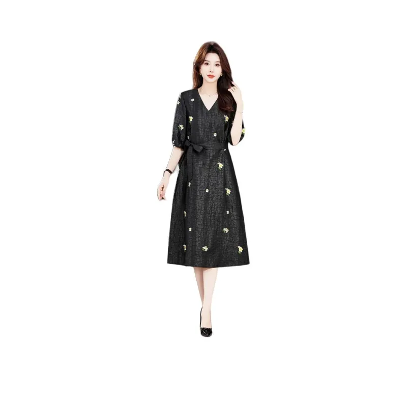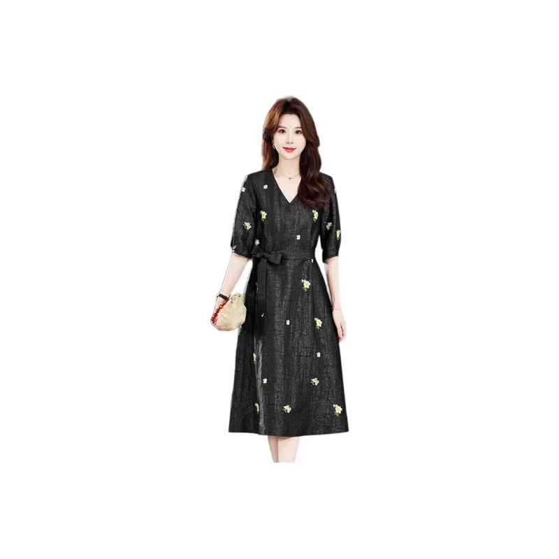 H YXIANG Короткое платье с короткими рукавами женское черное