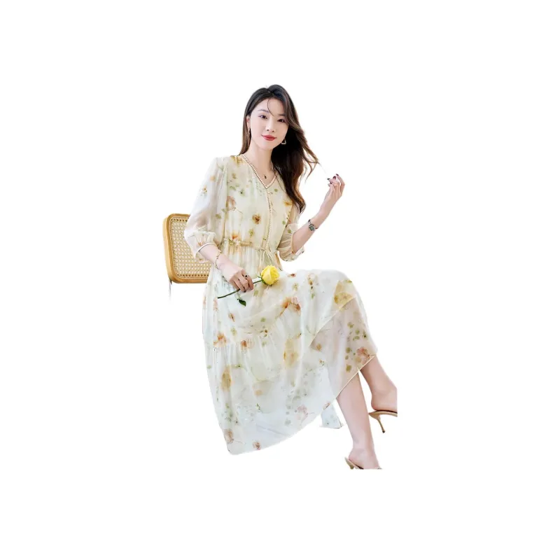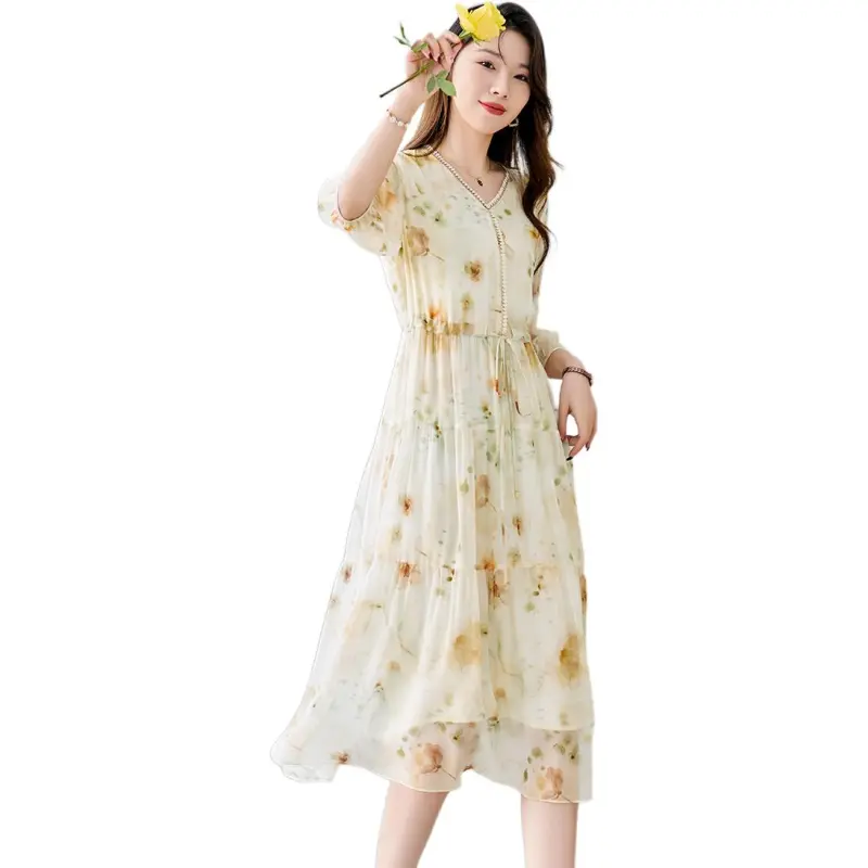 H YXIANG Короткое платье с короткими рукавами женское многоцветное