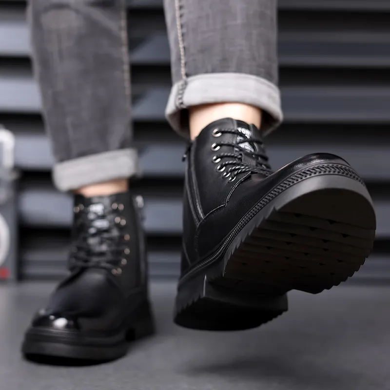 H2 Лицевая коровья кожа Платформа Удобная Мужская обувь Нишевый Дизайн Универсальная Обувь Мужской Мартин Ботин Мужской