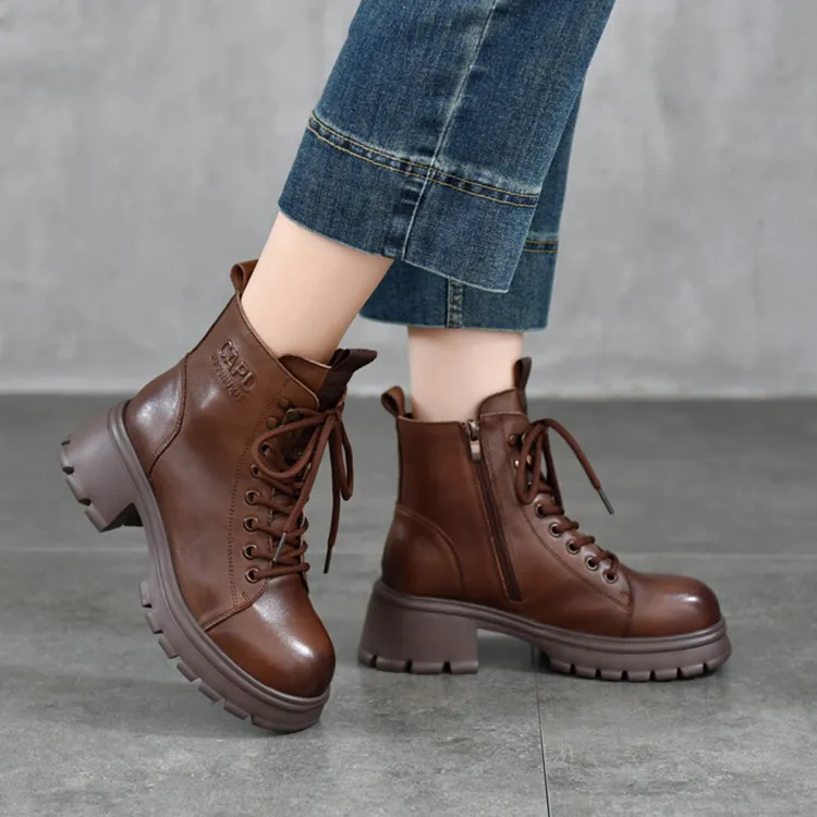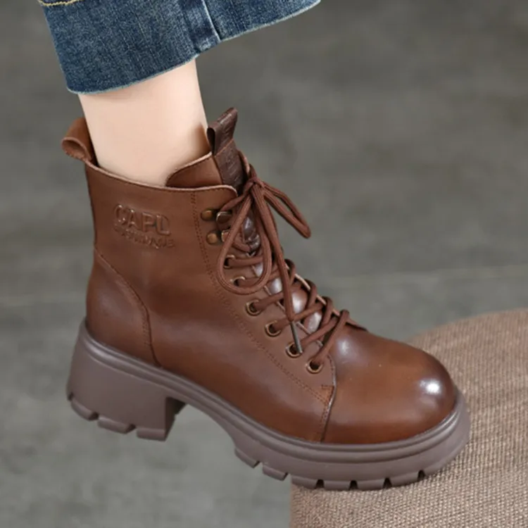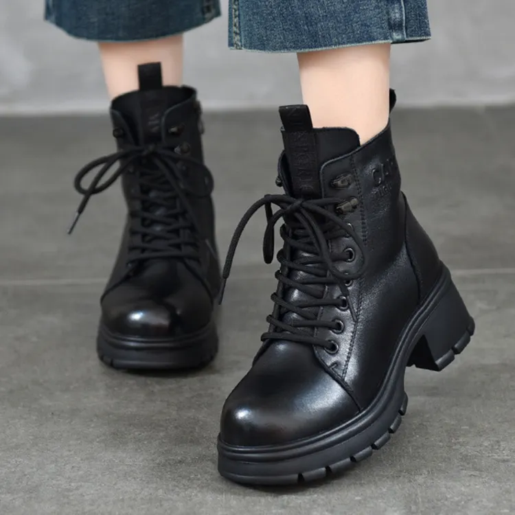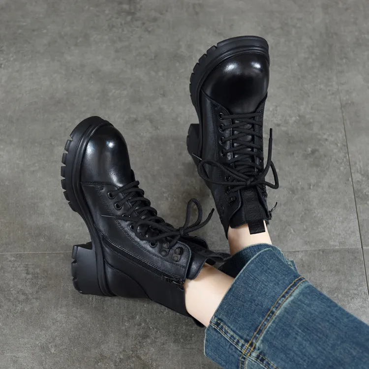 H2 Лицевая коровья кожа Платформа Винтаж Женская обувь Мартин Boot Женские