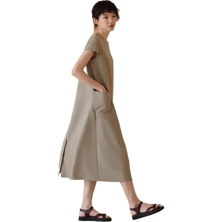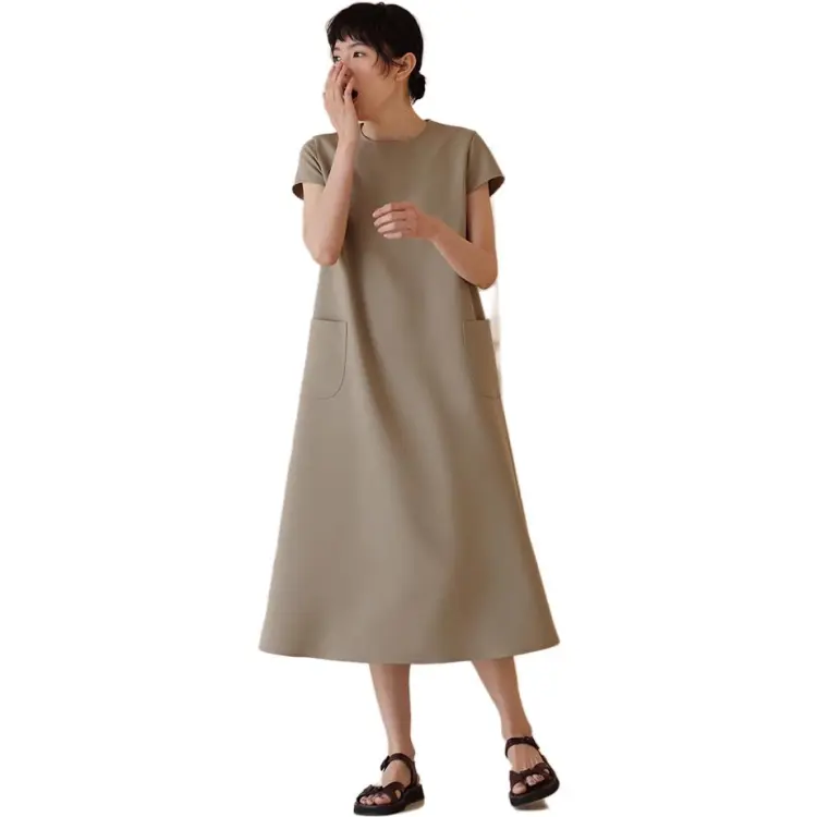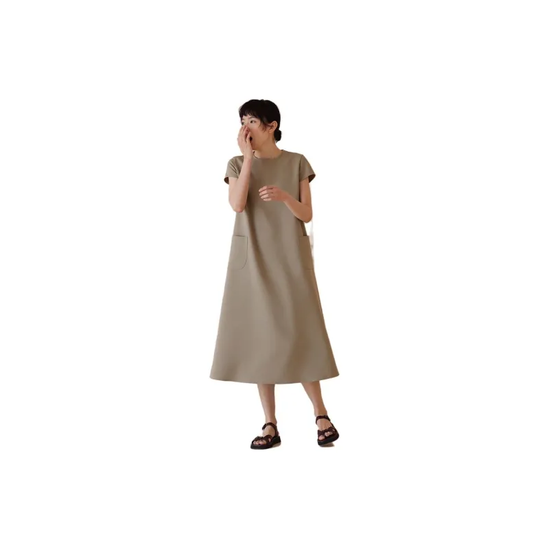 HACHIXIAOJIE Шалфейно-зеленый Женские Короткие Платья с Короткими Рукавами