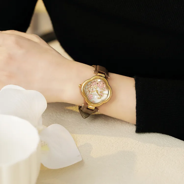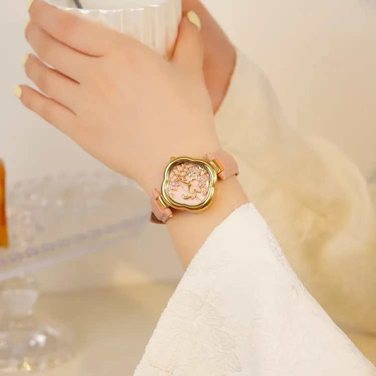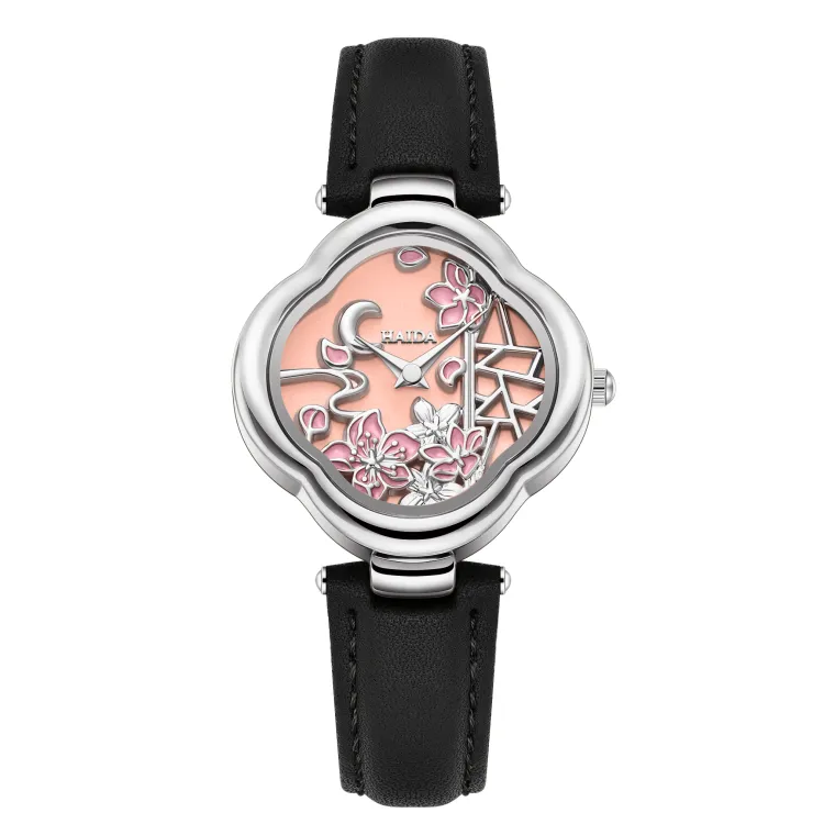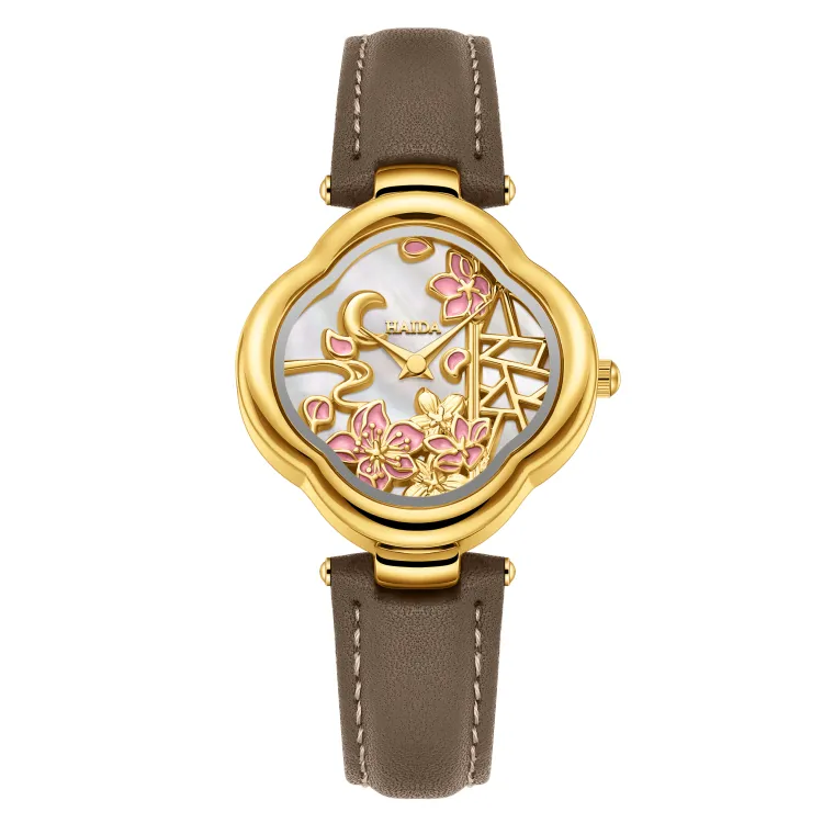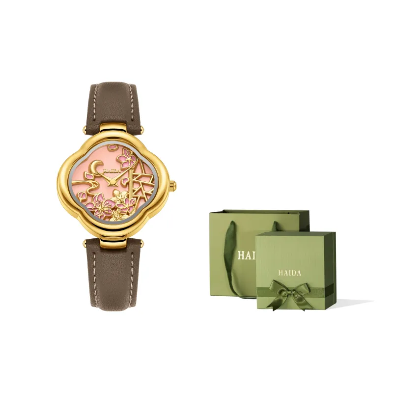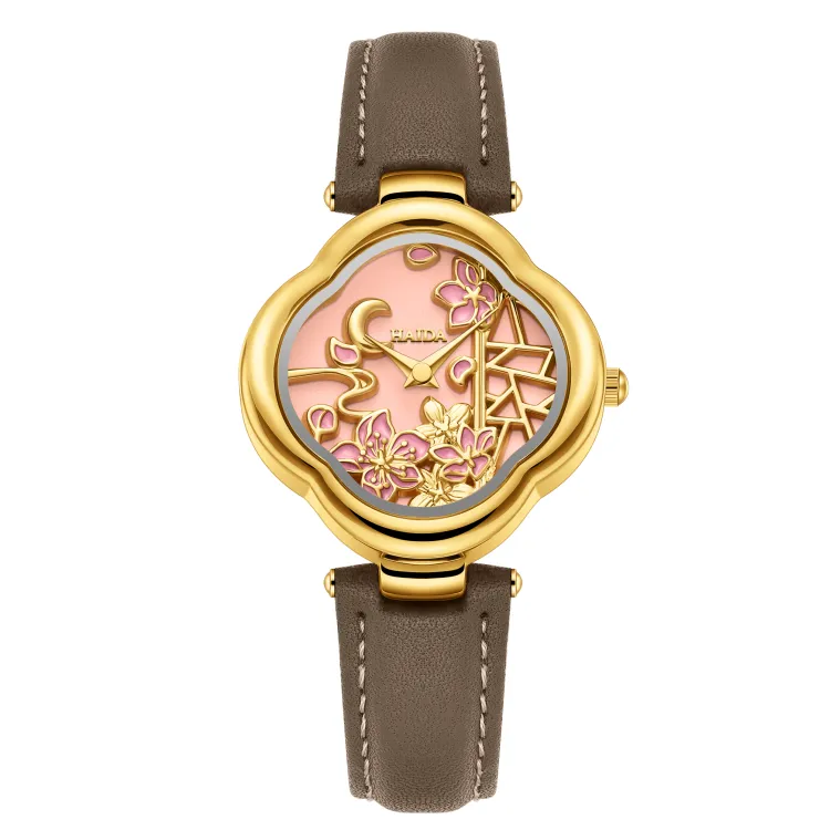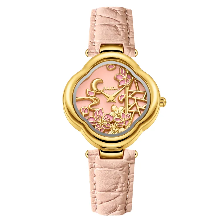HAIDAHAOLI Кварцевый механизм кожаный ремешок из коровьей кожи женские часы розовый циферблат